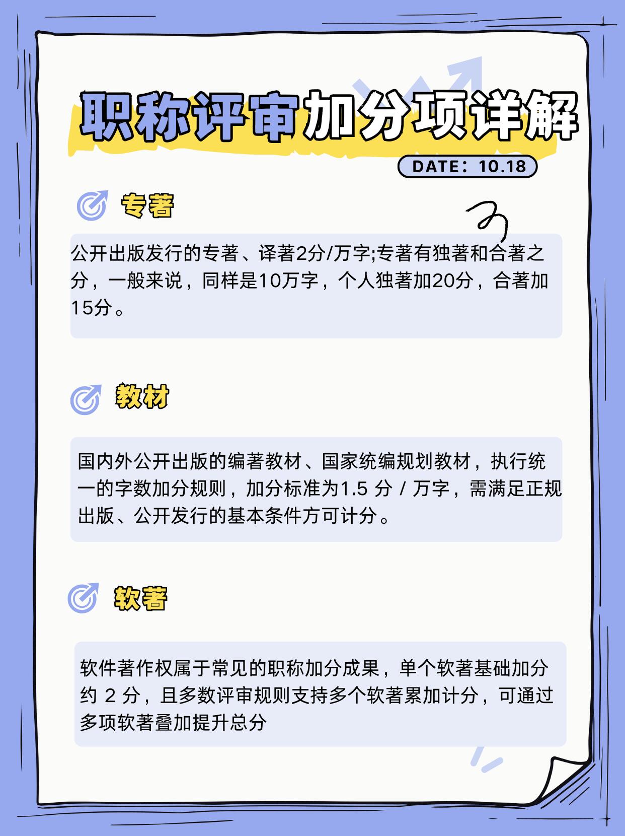 职称评审加分细则:专利、专著、教材、软著要求与计分