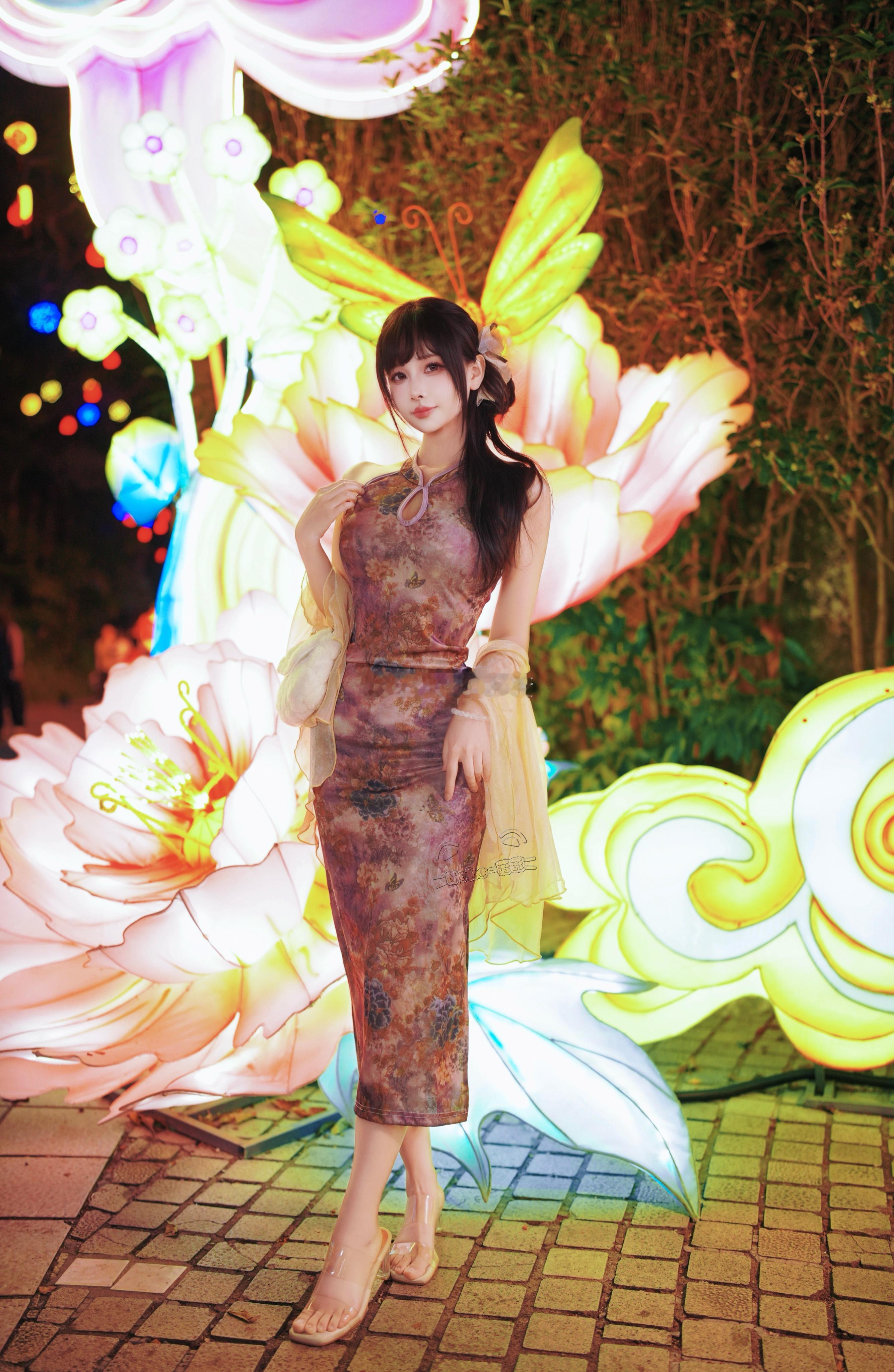 Neko_薇薇我和三坑的日常新年战袍 前几天晚上去新春灯会拍了几张照片~旗袍和灯会完美适配