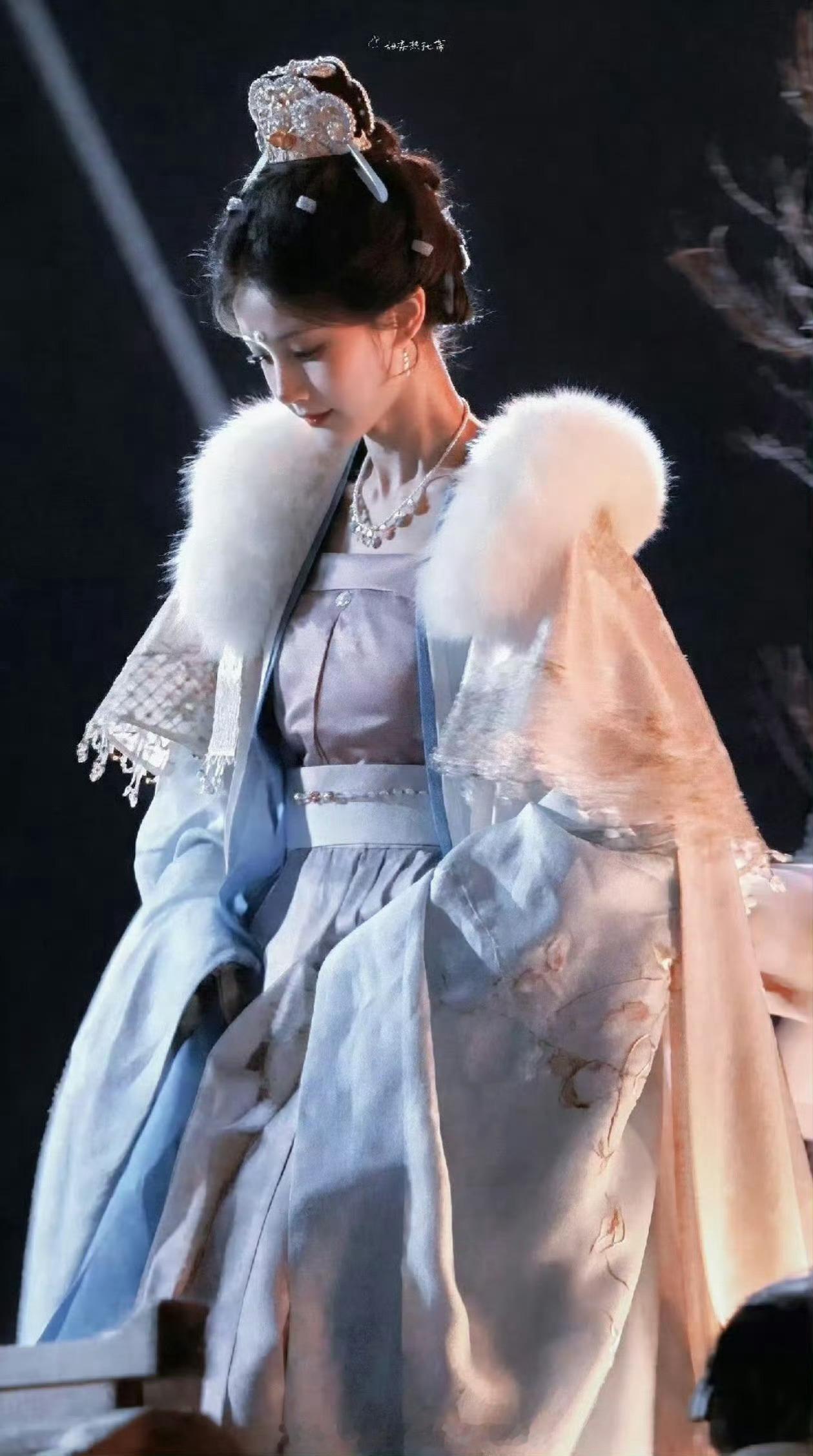 第一个造型看起来是走宋制~~~🍃🍃🍃李一桐 《金枝》陈雀儿☽ 紫衣+白斗篷