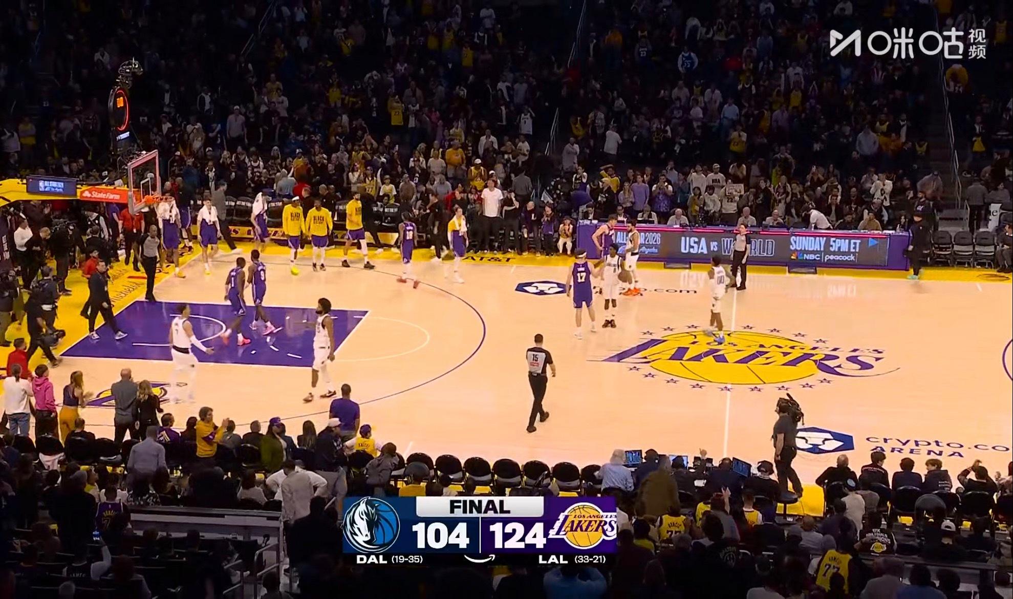 比赛结束,湖人三杀独行侠。