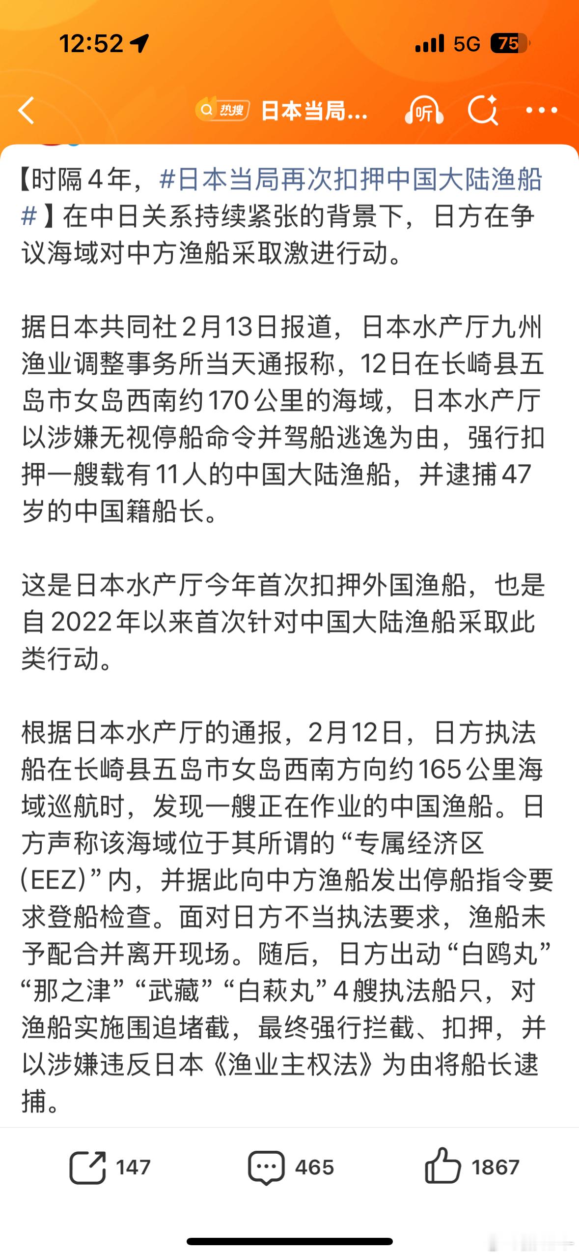 日本当局再次扣押中国大陆渔船鬼砸又来搞事情了,还越来越飘了……