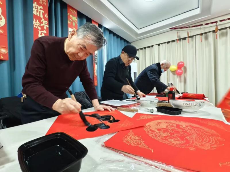 当日上午9时许,社区活动室内早早布置妥当。一张圆桌旁设为包饺子区,志愿者与居民们围坐在一起,大家分工协作,揉面擀皮、包馅捏褶,不大会儿的工夫,一个个圆润饱满、寓意着幸福团圆的饺子便整齐摆满托盘。另一侧的春联书写区也同样热闹非凡,社区邀请的书法爱好者们挥毫泼墨,“邻里和睦春常在,社区文明福自多”等寓意吉祥的春联与福字接连写成,引得爱好书法的居民驻足欣赏,更有不少家长带着孩子现场学艺临摹,在笔墨书香中感受传统文化魅力。