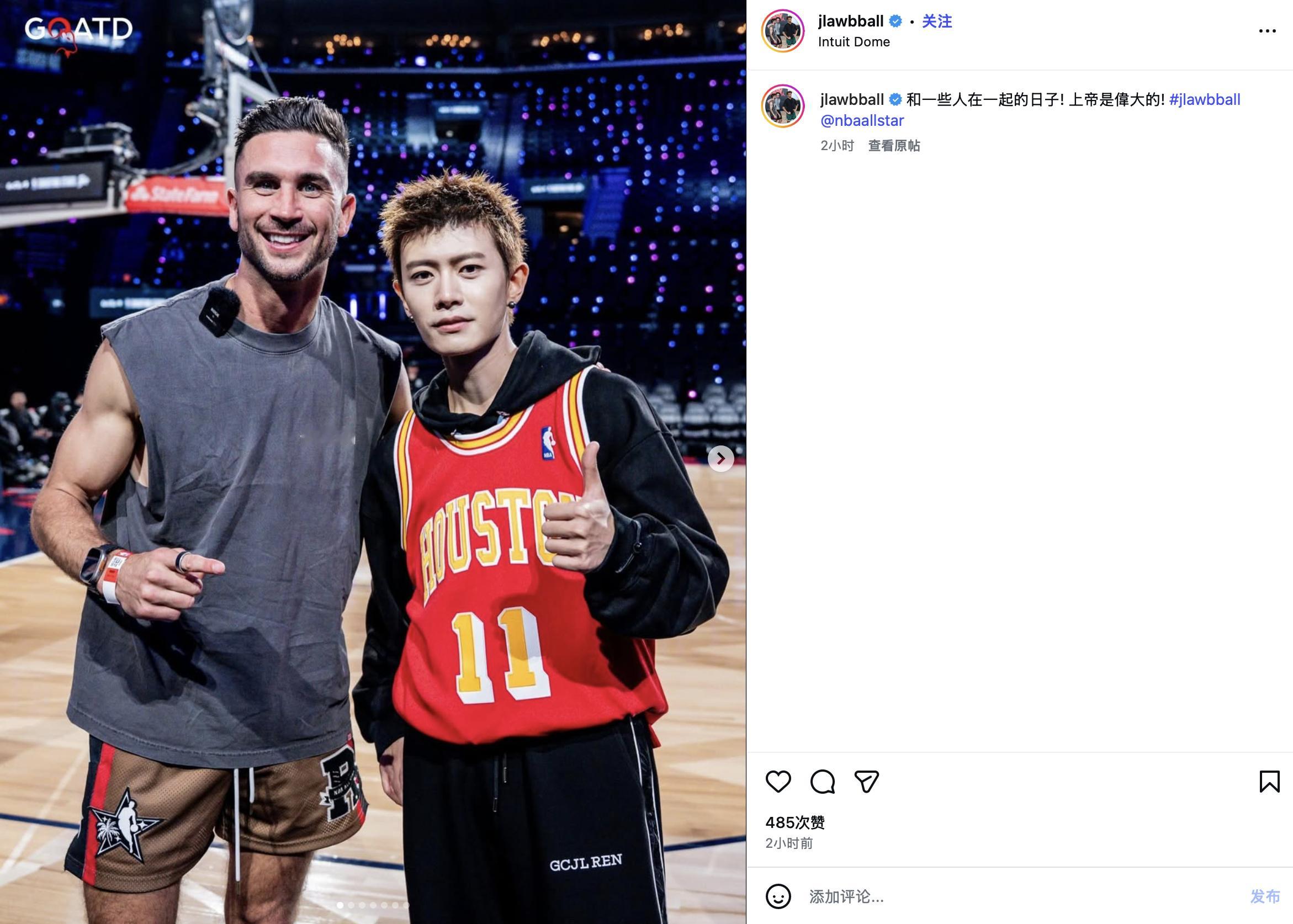 任嘉伦任嘉伦nba马力全开任嘉伦解说nba全明星任嘉伦腾讯nba星推官 美国篮球训练师、篮球内容创作者乔丹-劳利(Jordan Lawley)晒出一组全明星合照,与任嘉伦的合照放在第一张,嘉伦哥身穿姚明火箭11号球衣🚀NBA全明星周末明天正式开启,任嘉伦连续3天解说比赛,今天是全明星的前一天,NBA特意举办了一个篮球内容创作者的3x3比赛,也是回馈合作的创作者的活动,应该是云集了很多NBA相关的美国网红。嘉伦哥这也是去体验了一把全明星的新活动!(也是被美国网红发现了嘉伦哥的流量吧)