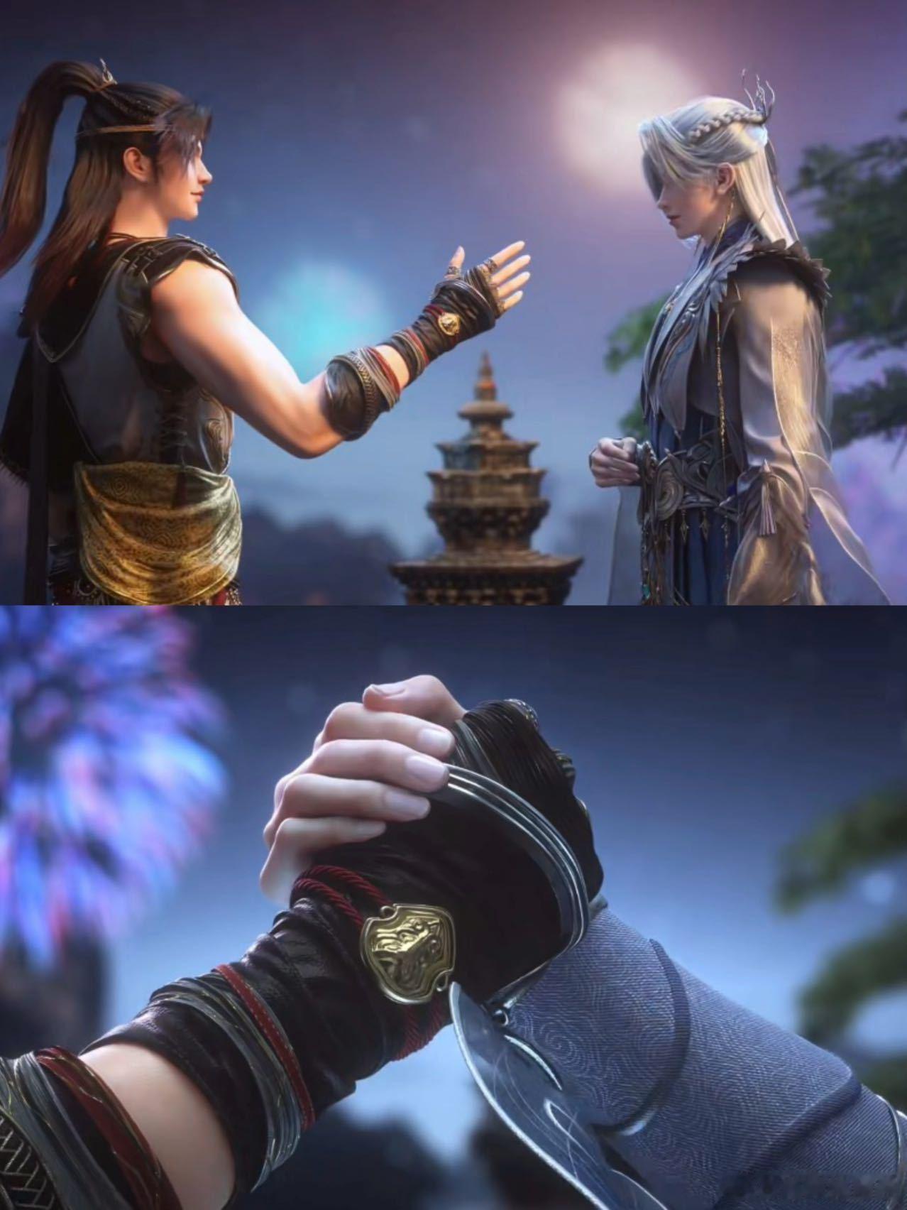 国漫烟花又有名场面了《山海经密码》中江离与有莘不破共赏烟花的片段,堪称经典!烟火在夜空中绽放,照亮了他们的脸庞,也照亮了彼此牵挂的心。从分离时的痛苦到重逢时的欣喜,都在这烟火中得以诠释。这是一场视觉与情感的双重盛宴,是国漫中不可多得的高光时刻,氛围感和剧情感双双在线,让人忍不住为之赞叹。