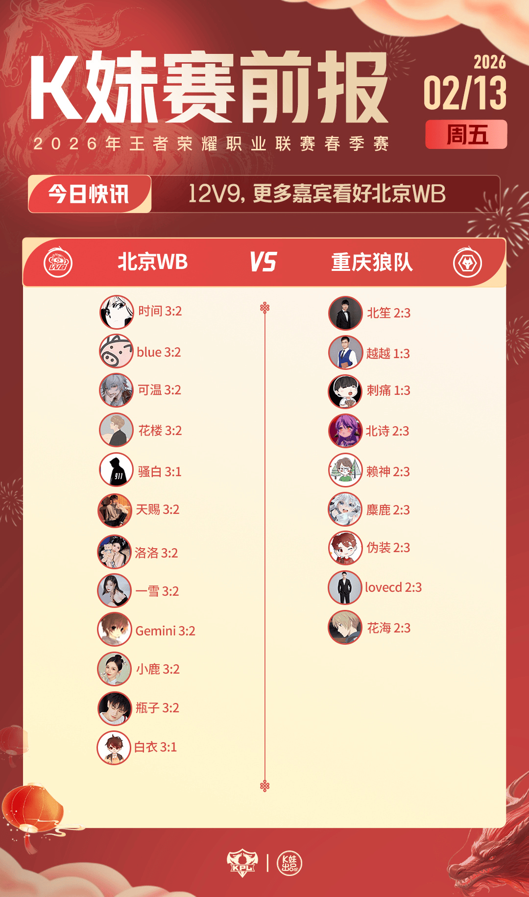 虎扑02月13日讯[K妹赛前报]刺痛/赖神/LCD等少数人看好狼队,支持AG人更多
