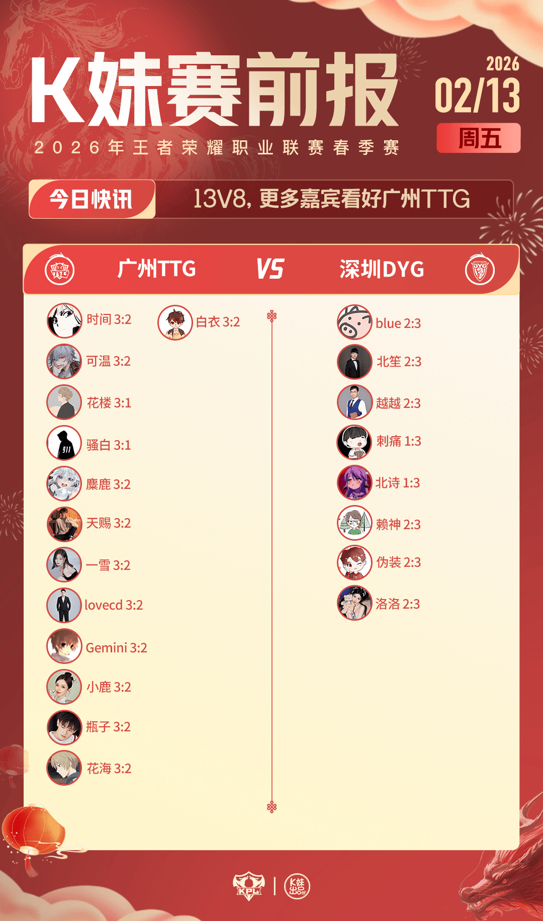 TTG对战DYG:13v8,更多嘉宾看好广州TTG;