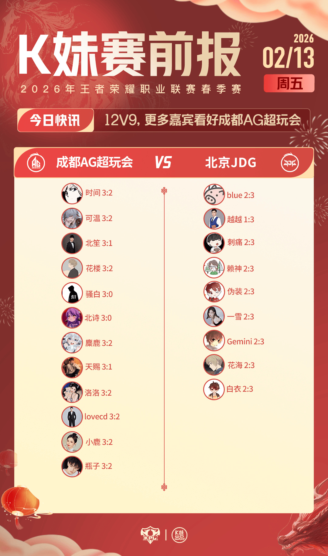 AG对战JDG:12v9,更多嘉宾看好成都AG超玩会。