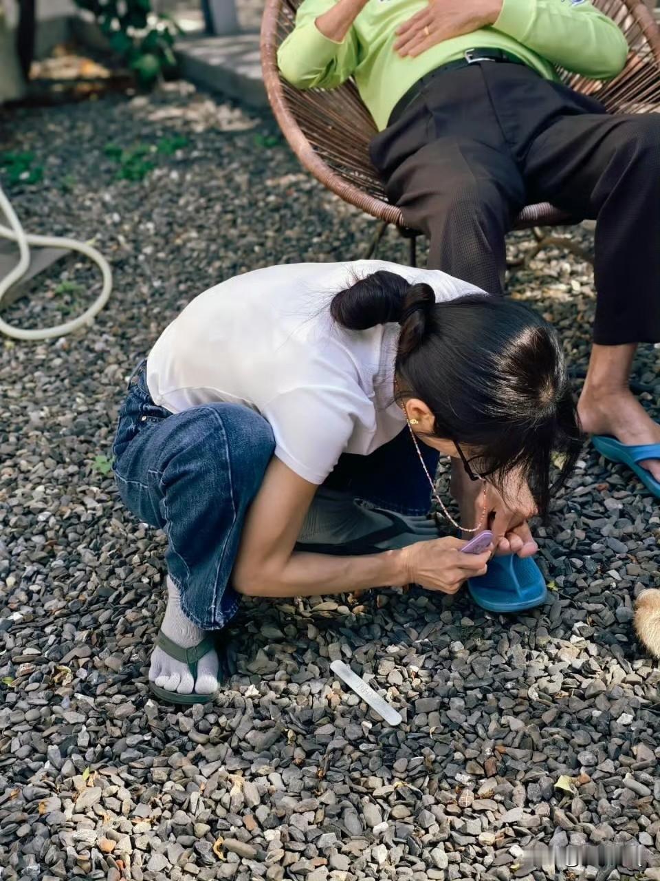 Ella陈嘉桦回老家准备过年,帮家里的老人剪手指甲和脚指甲。看Ella这么大大咧咧,没想到这么孝顺。
