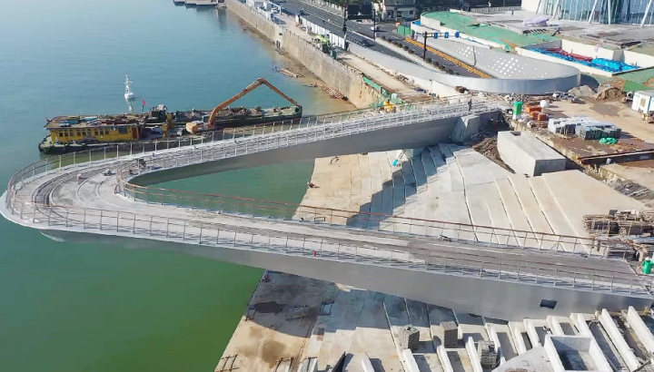 其中1号码头率先于2025年1月完工,有2个客旅泊位、9个游艇泊位,采用灵活的浮码头结构,通过活动钢引桥和固定式引桥与陆地连接。