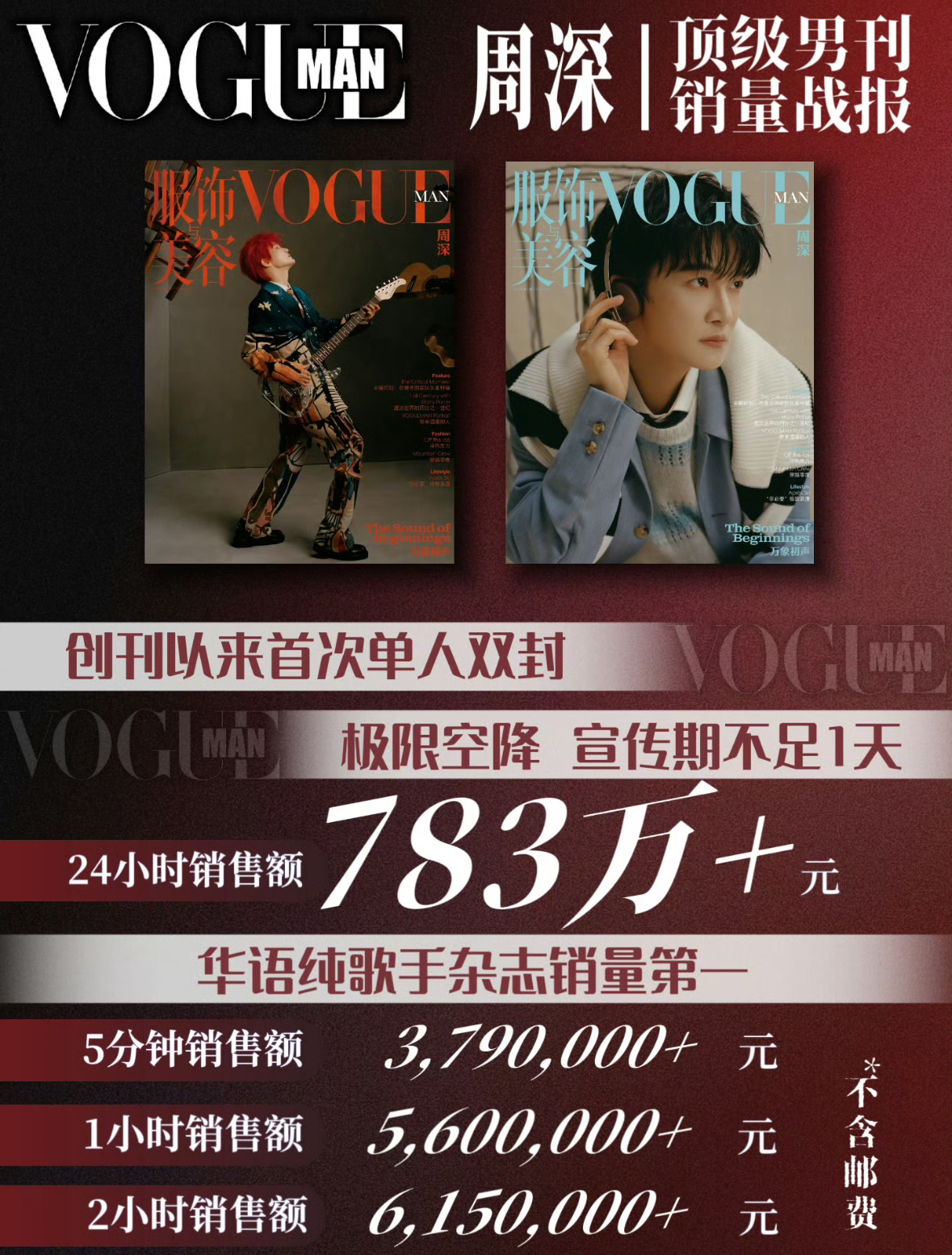 周深新杂志24h销量783w+,纯歌手杂志销量第一!☝🏻空降无预热、宣发不足一