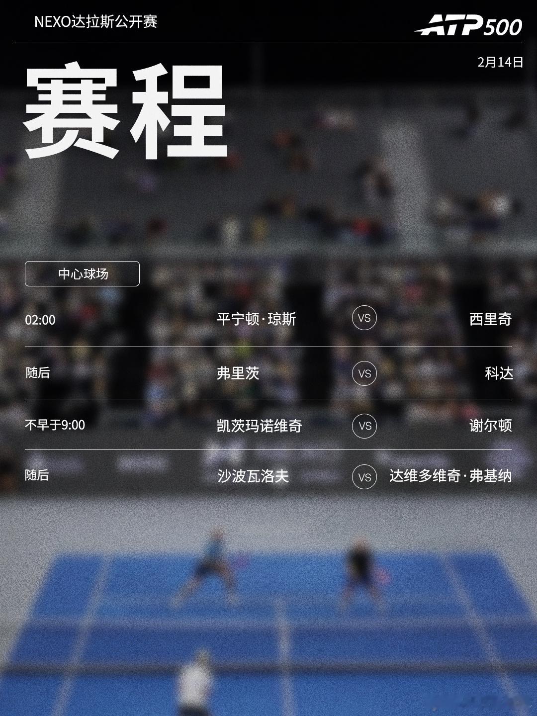 ⭕️ ATP500Nexo达拉斯公开赛📍达拉斯🎾弗里茨迎战同胞科达,西里奇、沙波瓦洛夫出战。