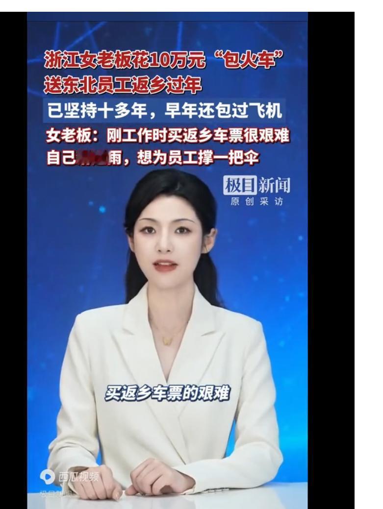 浙江女老板连续十多年包火车送东北员工返乡过年:今年送了300多人花费近10万元,前几年还曾包飞机 在这个快节奏、高压力的时代,许多企业主忙于追求利润和扩张,员工福利往往被忽视。然而,浙江这位女老板却用她的行动,诠释了什么叫“以人为本”的企业精神。连续十多年,她坚持包火车票送东北员工返乡过年,今年更是花费近10万元,送出了300多张车票。更令人感动的是,前几年她还曾包飞机,让远在千里之外的员工能够回家团圆。 这背后,是怎样一份温暖与责任感?又是什么力量,让她甘愿承担这笔不小的开支?我们看到的,不仅是一个企业家的善举,更是一面镜子,照出了当代职场人最深的渴望和无奈。 每逢春节,数以百万计的打工人踏上归乡的旅途,拥挤的火车站、漫长的等待,背后是他们对家的深切眷恋。尤其是东北员工,离家远、路途远、费用高,很多人甚至因为负担不起车票而只能选择留守异地。女老板的举动,恰恰填补了这份情感与现实的鸿沟。她用实际行动告诉员工:“你们不仅是我的劳动力,更是我关心的家人。” 这份坚持十多年的传统,不仅是物质上的支持,更是一种情感上的归属感塑造。员工们心里明白,这份福利背后,是老板对他们生活的关注和尊重。正是这种关怀,让员工在外打拼时多了份安心和动力,也让企业文化更加温暖有力。 然而,这件事也引发了广泛的社会讨论。有网友质疑:在经济压力日益增大的今天,这样的“豪气”是否会成为企业负担?老板的良心之举是否会被模仿,还是只能成为个别“传奇”?更有人感慨,为什么只有少数老板愿意为员工的幸福买单,而更多的员工只能在寒风中孤独等待? 这正是我们社会的一个缩影:经济发展与人文关怀的矛盾,利益最大化与员工幸福感的拉锯。浙江女老板的故事,提醒我们——企业的成功,不仅仅是利润数字的增长,更是员工心灵的富足和归属。 也许,我们每个人都应该问问自己:如果你是老板,你愿意为员工做些什么?如果你是员工,你又期待怎样的关怀?这不仅是一个企业的故事,更是我们共同的社会课题。 在这个故事背后,我们看到了人性的光辉,也看到了现实的残酷。正是这种对比,激起了我们心底最真实的情感——渴望被理解,渴望被尊重,渴望一个温暖的归属。 你是否也曾在春节的车站,望着拥挤的人群,心中涌起对家的思念?你是否也期待有一天,能遇到这样一位“女老板”,用她的善意,点亮你回家的路? 这不仅仅是一张车票,更是一份温暖的承诺,一种责任的担当,一段关于人性与社会的深刻对话。继续关注,我们将揭开更多这背后的故事,带你走进那些温暖人心的企业背后,感受人性最柔软的力量。