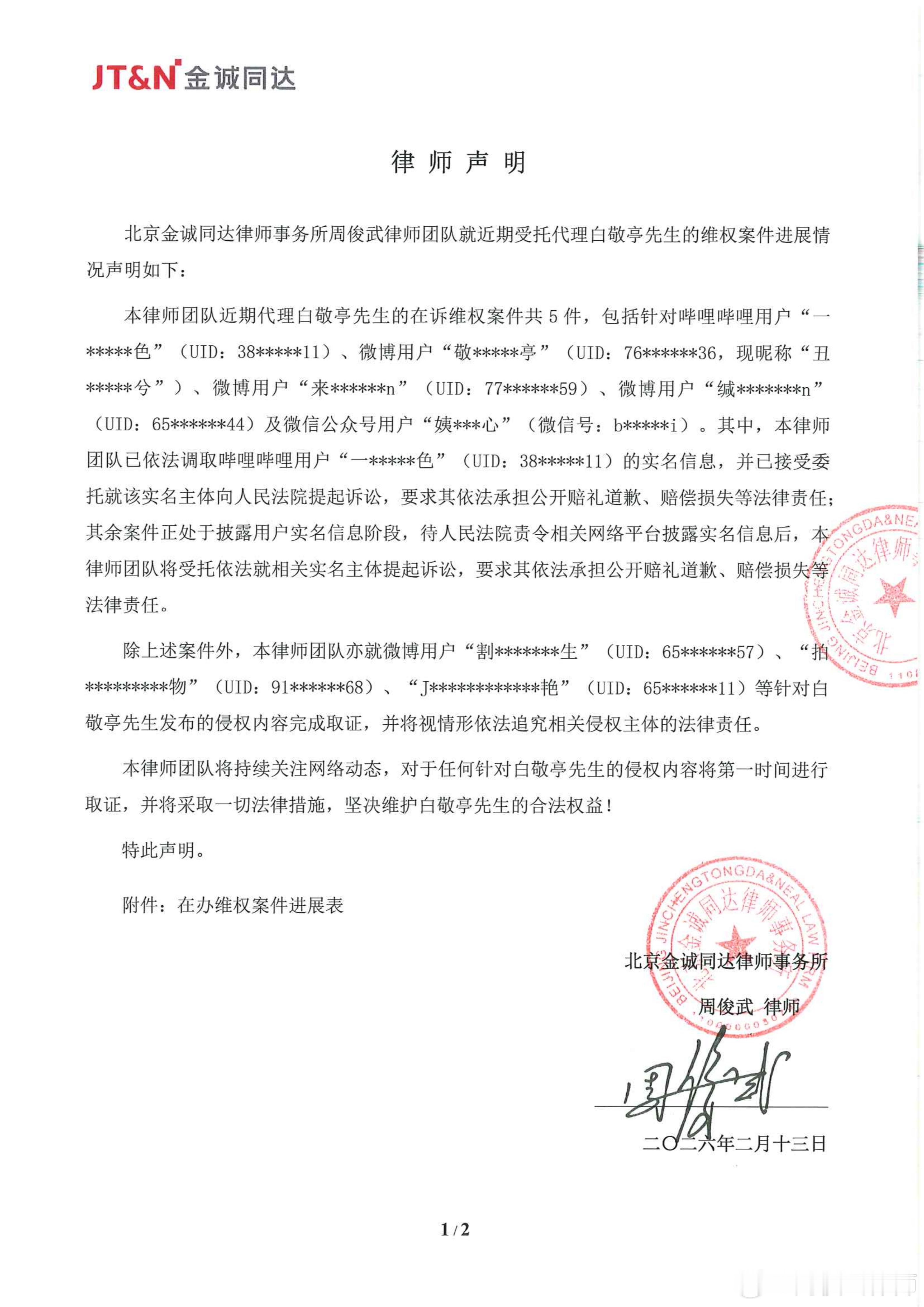 白敬亭告黑最新进展支持白敬亭维权白敬亭