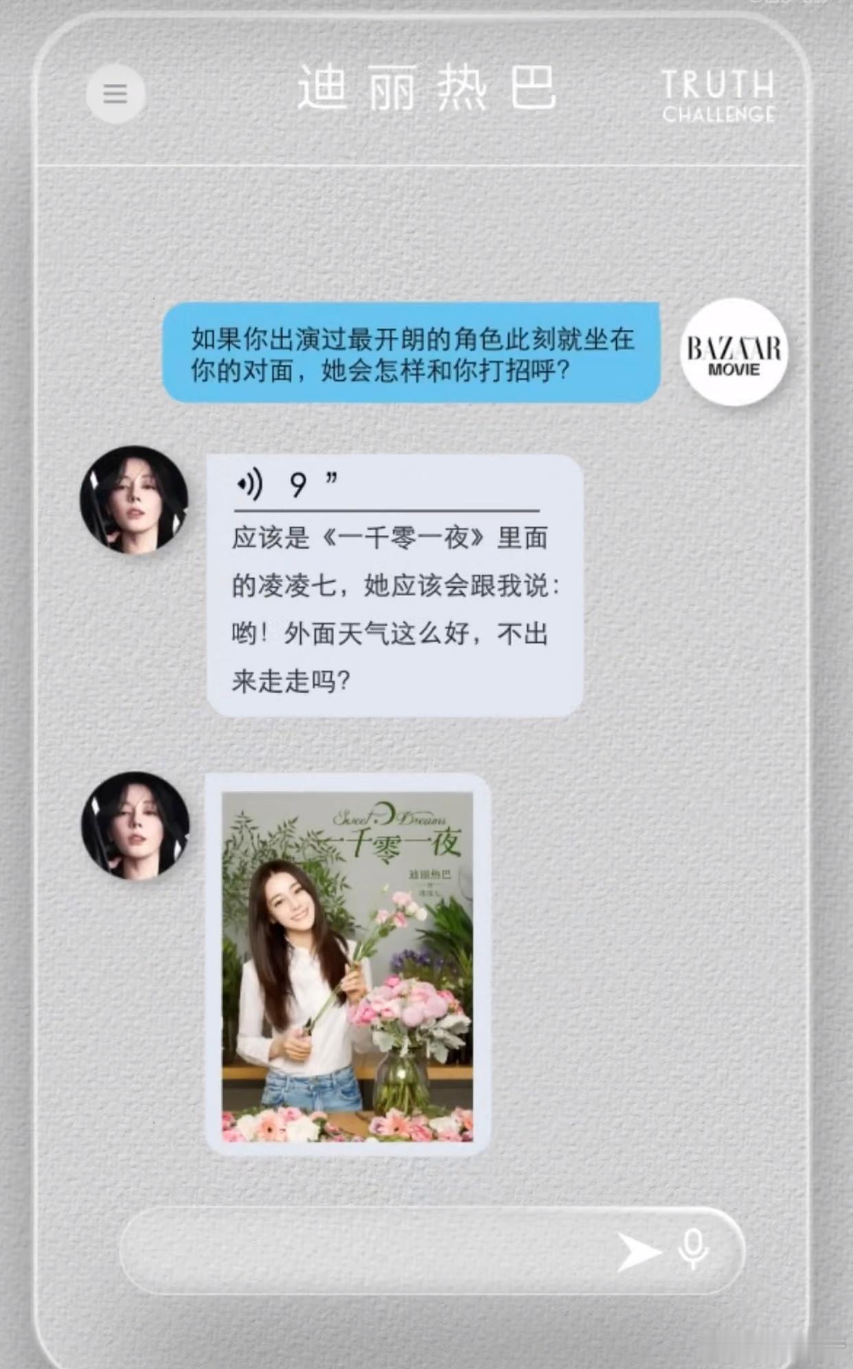 迪丽热巴用凌凌七声音和自己打招呼迪丽热巴再现凌凌七声音 迪丽热巴用凌凌七声音和自己打招呼,再现凌凌七声音,好可爱!