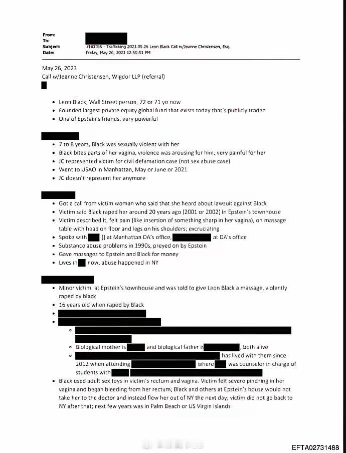 无耻之尤! 爱泼斯坦文件披露,全球最大的上市私募股权基金——阿波罗全球管理公司、美国亿万富豪莱昂·布莱克卷入一项严重罪行:“暴力咬伤7岁女童阴部,性虐待多名女性!” 这般禽兽不如的恶行竟出自美国精英阶层,美国社会真可谓病入膏肓!若再不深刻反思,美国还有未来吗?