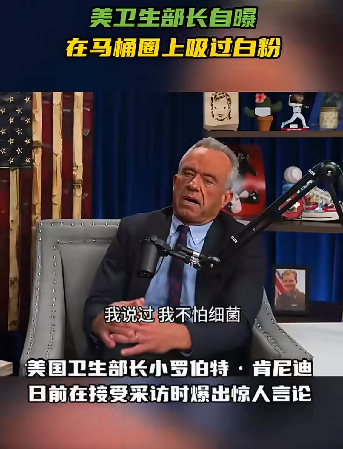 美国卫生部长小罗伯特·肯尼迪日前在接受采访时表示:“我不怕细菌,我以前在马桶座上吸可卡因。”