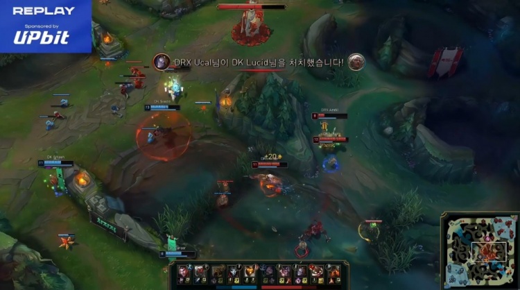 [8:09]Lucid安蓓萨带队进DRX野区反蓝,Career巴德被Andil泰坦钩住后送出人头,随后Smash烬下路单杀Jiwoo飞机,同时Willer赵信去上联手Rich凯南轻松越掉没闪的Siwoo。
