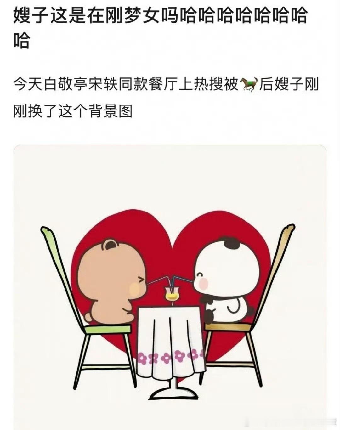 白敬亭宋轶同款餐厅被热议后,宋轶微博背景换成了情侣在餐厅吃饭的漫画图。