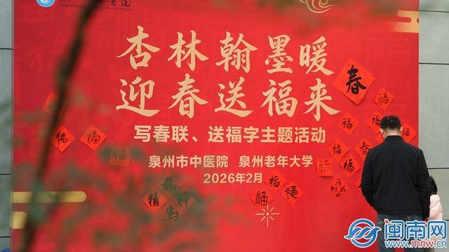 闽南网2月13日讯(闽南网记者尤燕姿洪泓塬通讯员连文元陈玮铭文/图)翰墨飘香迎新春,福暖杏林情意浓。为弘扬中华优秀传统文化,营造喜庆祥和的节日氛围,传递医院对老中医药专家、一线医护人员及广大群众的关怀与祝福,今日上午,泉州市中医院与泉州老年大学携手,在院内隆重举办“杏林翰墨暖迎春送福来”写春联、送福字主题活动。笔墨传情、福满全院,让浓浓年味与医者温情在杏林之中温暖绽放。
