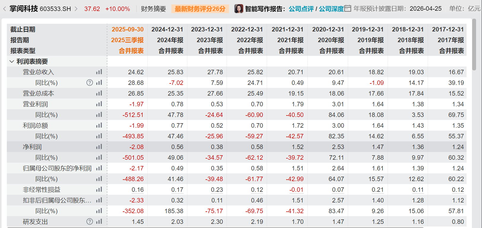 对此,掌阅科技在业绩预告中表示,国内外双线发展模式带来短期投入的大幅增加,短期对公司整体盈利能力形成一定拖累,导致公司2025年年度业绩亏损。