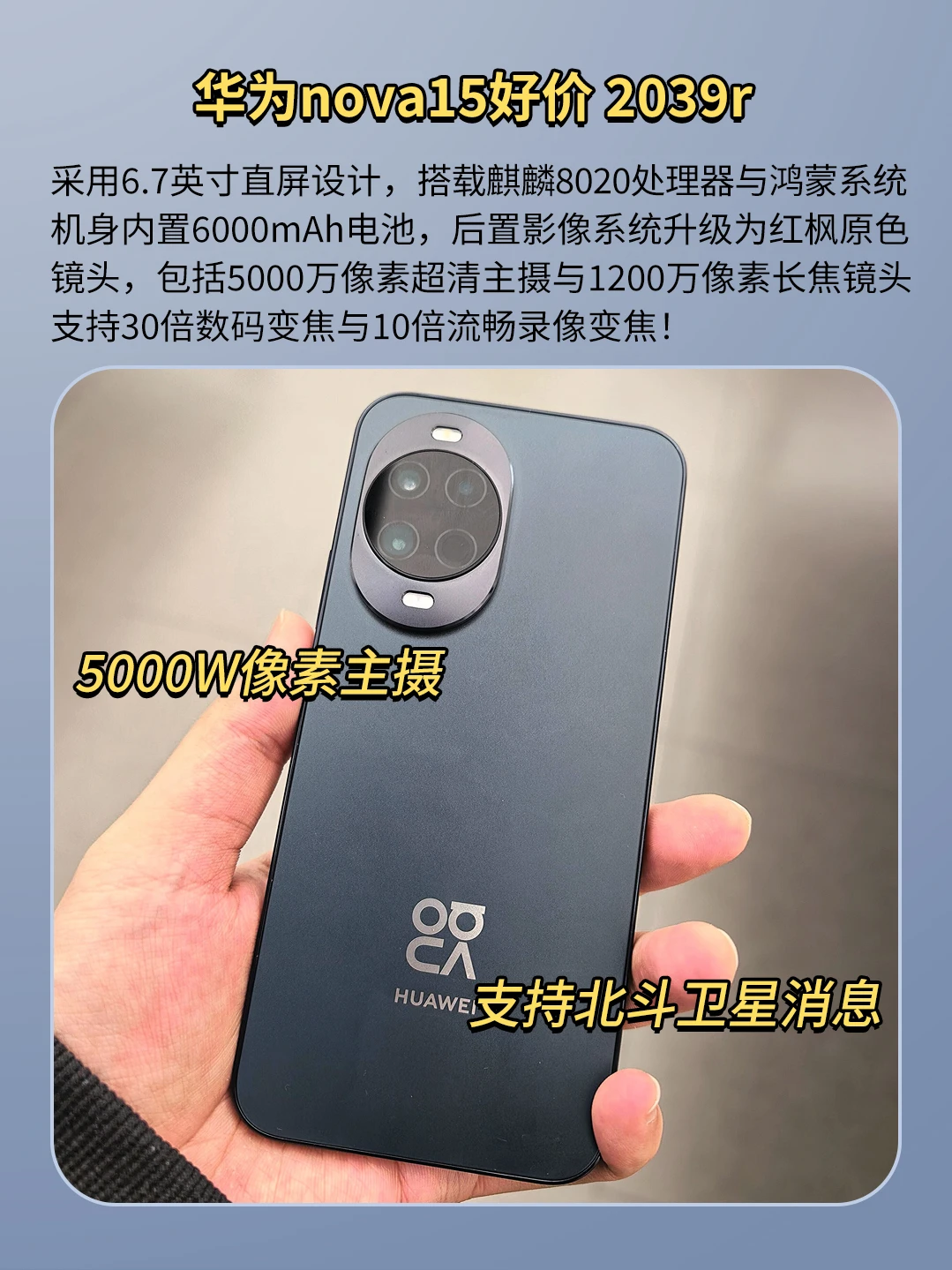 采用6.7英寸直屏设计,搭载麒麟8020处理器与鸿蒙6系统!后置影像系统升级为红枫原色镜头,包括5000万像素超清主摄与1200万像素长焦镜头,支持30倍数码变焦与10倍流畅录像变焦!
