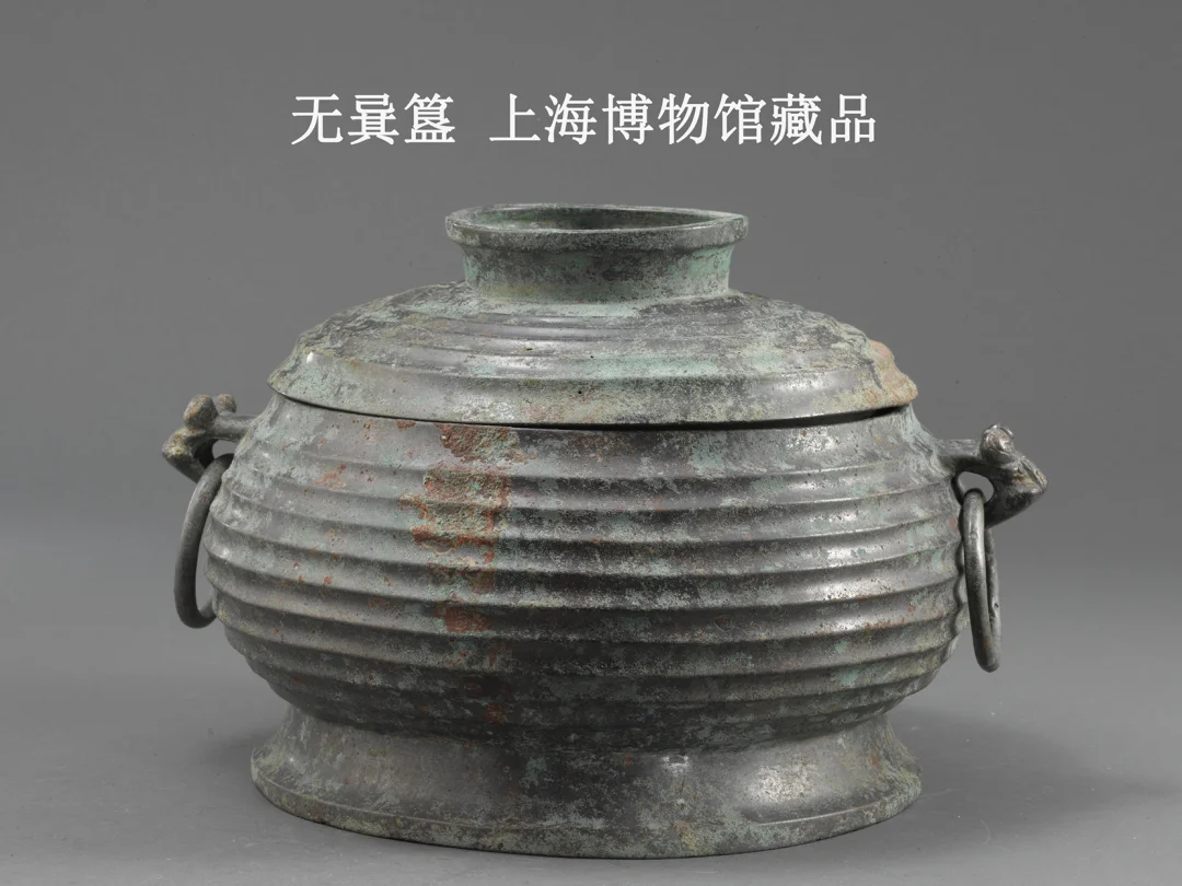 无㠱簋,西周中期,上海博物馆藏品。 无㠱簋尺寸,高21.8厘米,口径23.7厘米,底径25.75厘米。重6.66千克。 无㠱簋器型及纹饰,带盖,盖面饰瓦楞纹,盖面中心隆起圆形捉手,盖与口缘之间无折梭,浑然一体作扁圆形。盖和腹部饰瓦楞纹。器身为低体宽腹兽头衔环式,圈足簋。 无㠱簋铭文,器内底铸有铭文七行五十八字。 铭文释文:唯十又三年正月初,吉,壬寅,王征南夷。王赐无㠱马四匹。无箕拜手稽首,曰:“敢对扬天子鲁休”。令无㠱用作朕皇祖釐季尊簋。无㠱其万年子孙永寳用。 铭文大意:周孝王十三年正月壬寅,周王讨伐南方的徐国。(兴许是征讨过程中,无㠱有功。)周王赐给无㠱四匹马,无㠱对周王行跪拜大礼谢恩。周王让无㠱铸此宝簋,以祭拜周王先祖。无㠱祈福万代用此宝簋。