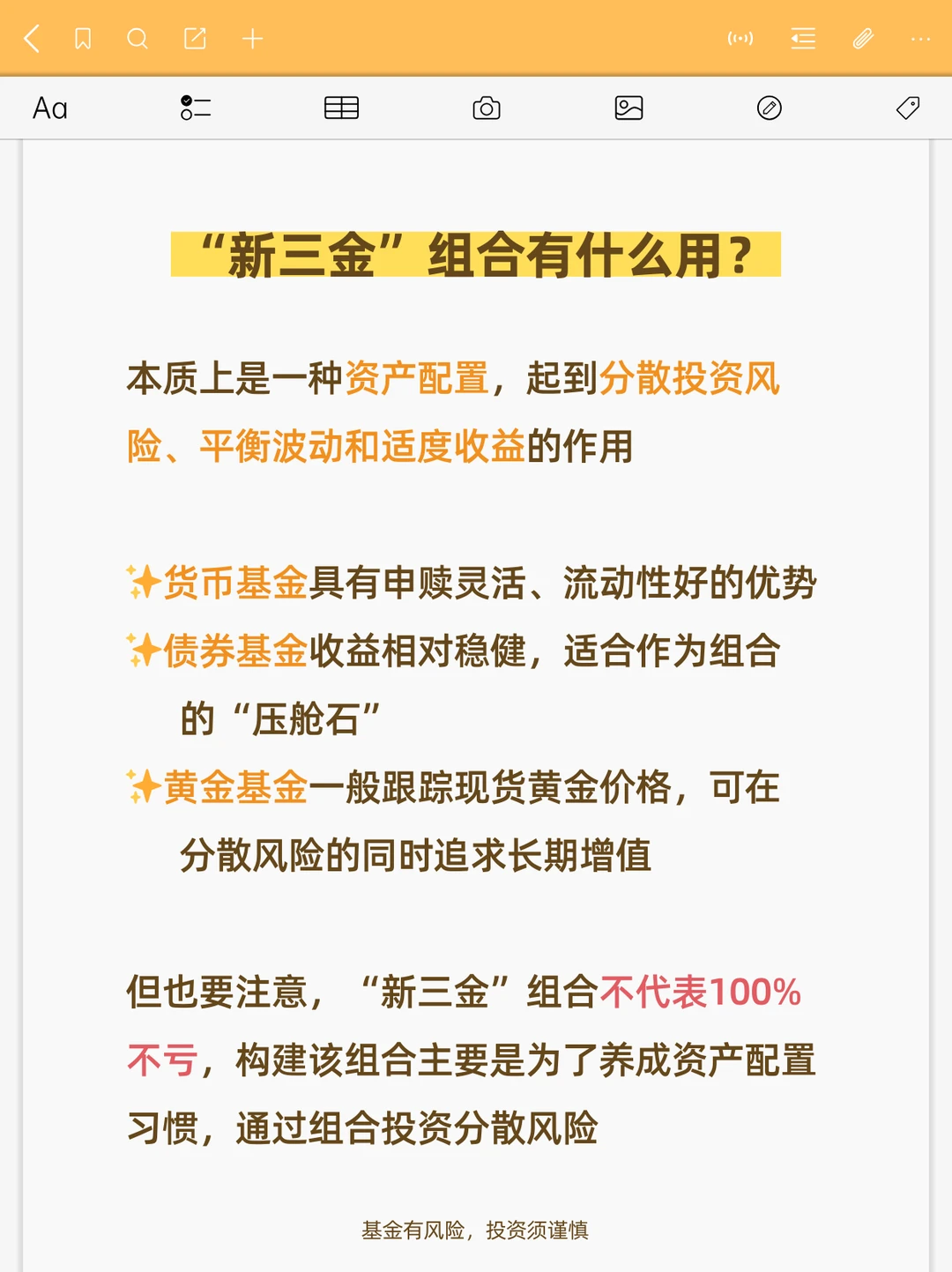 ⚠️但也要注意,“新三金”组合不代表❌100%不亏,构建该组合主要是为了养成资产配置习惯,通过组合投资分散风险