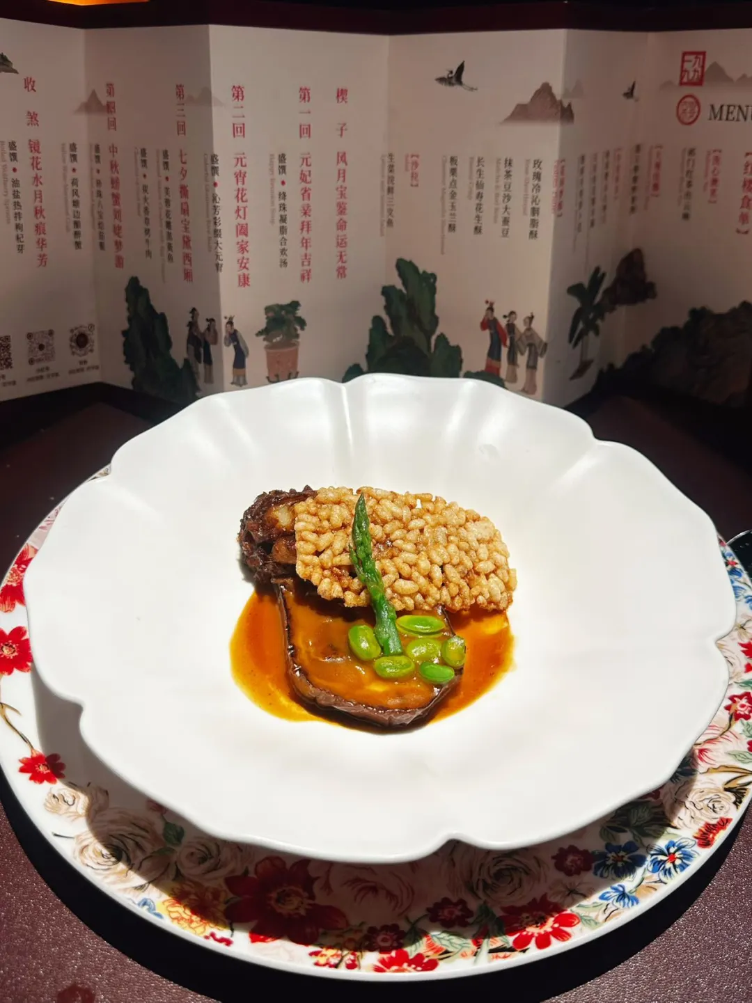 👍珍珠八宝烩茄鳌,看过红楼梦四十一回的都懂这道菜的含金量吧?八宝的结合吃起来很有层次感,脆口锅巴确实不一般!