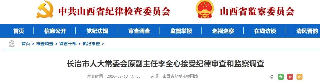 长治市人大常委会原副主任李全心涉嫌严重违纪违法,目前正接受省纪委监委纪律审查和监察调查。