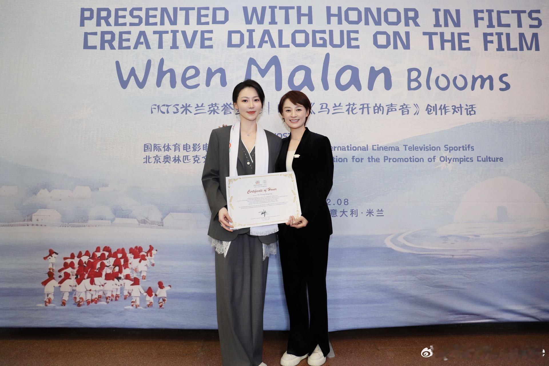 电影马兰花开的声音及主创在米兰获“国际体育精神传播奖”,导演马晓静与主演黄梦莹共