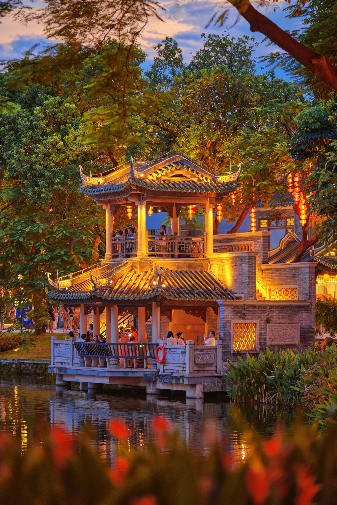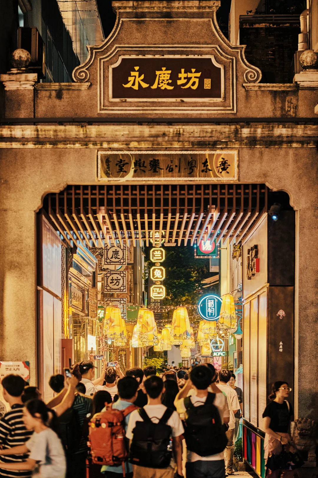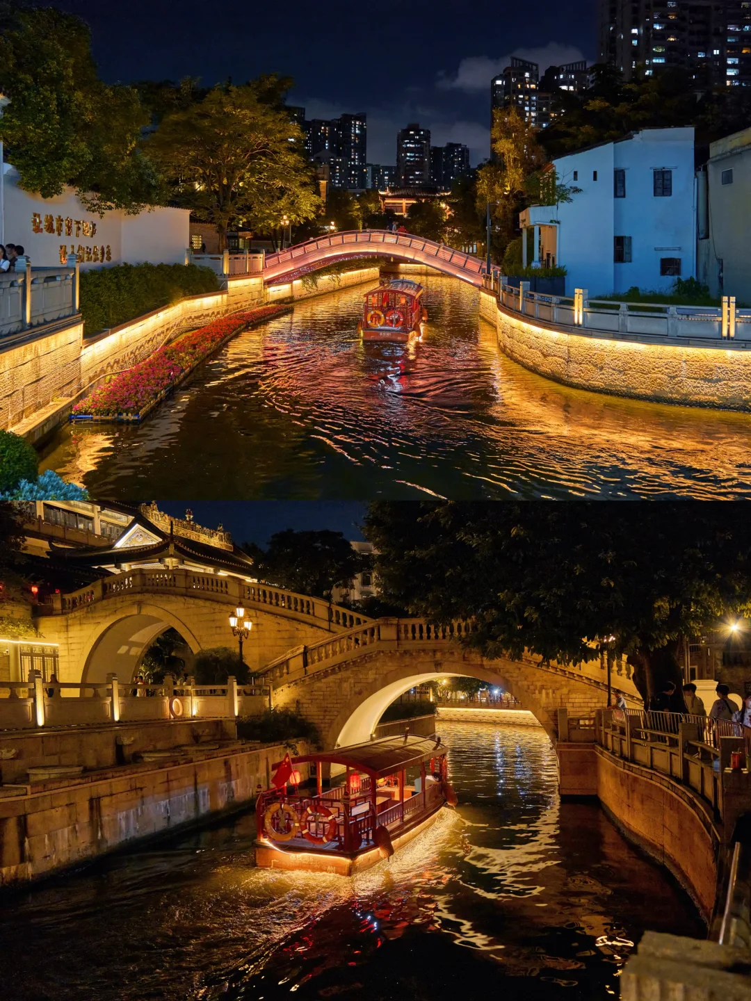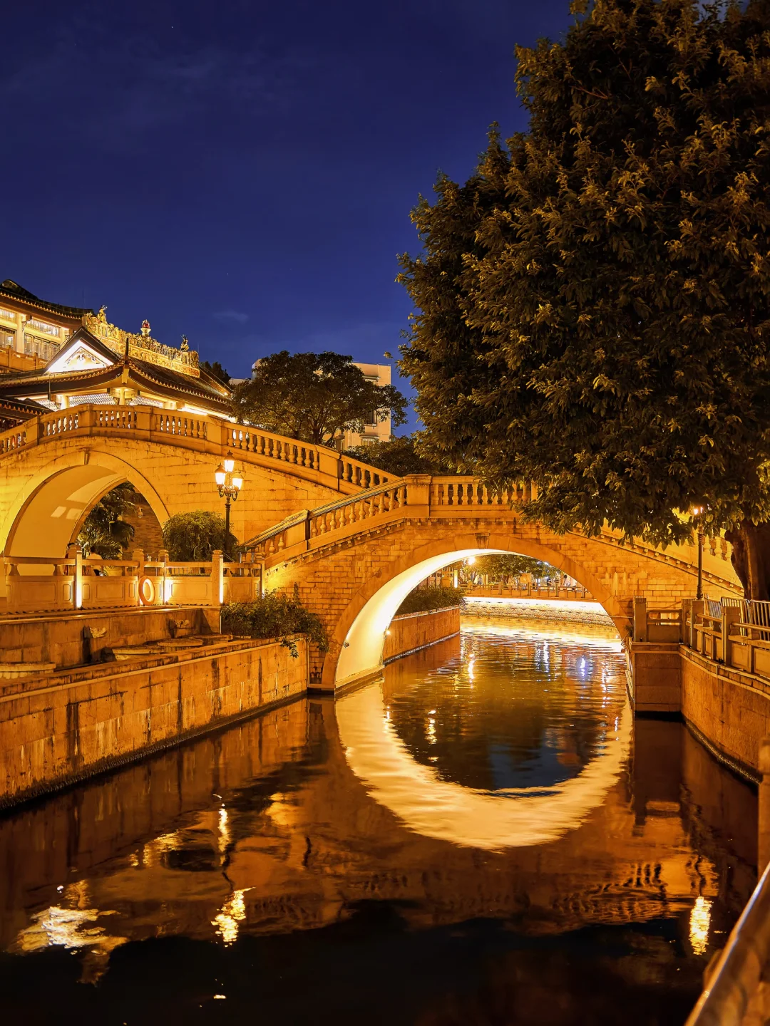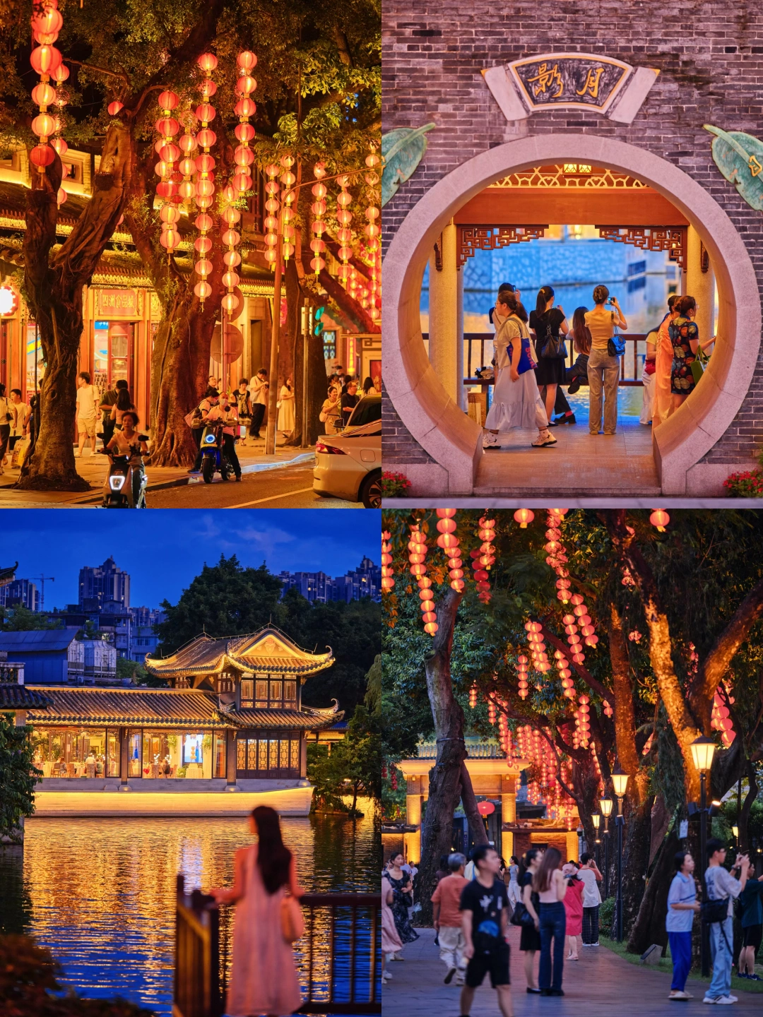 恩宁路骑楼连绵,李小龙祖居的满洲窗、粤剧博物馆的水上戏台,随手一拍都是岭南美学。夜晚直奔“月亮桥”,当灯笼亮起、桥洞倒影成月,岭南式浪漫直接封神!