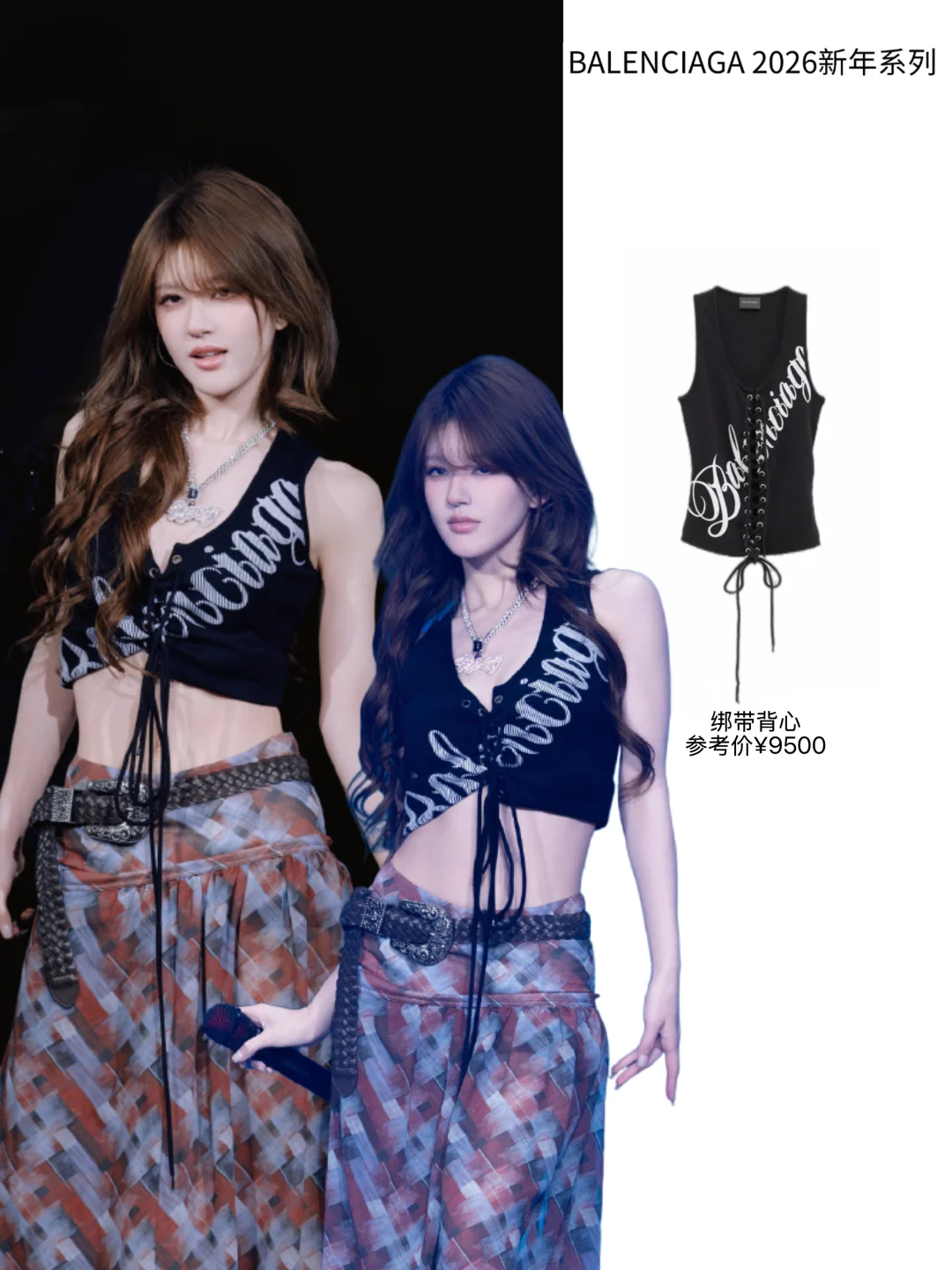 还有露思在之前的演唱会上,也pick了一件绷带背心,露思在绑带上巧施一点小心思,直接变成短款露脐装,又甜又辣!