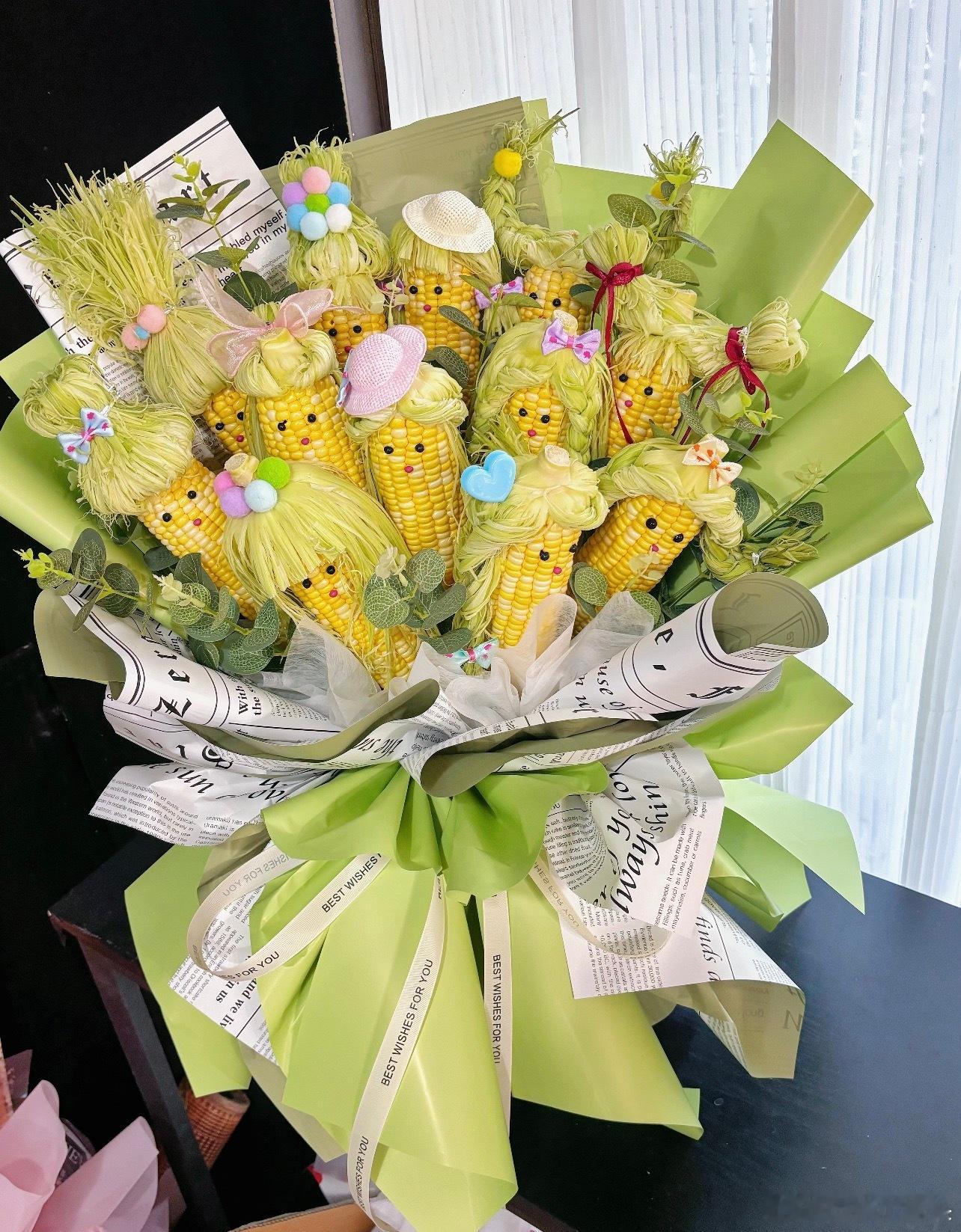 第一次见拿玉米做花的网友太有才了!玉米花束又可爱又实用!