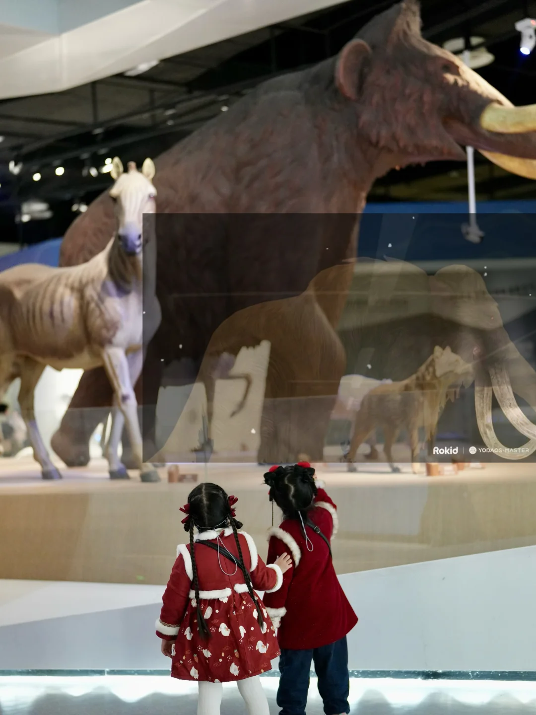 🦣在猛犸象区,戴上眼镜👓3D猛犸象在眼前甩鼻子、吼叫超震撼!娃全程“哇!哇!哇!”,语音讲解古气候科普,近距离感受冰河世纪巨兽生活。小朋友秒变考古小达人,还能了解灭绝与保护的意义
