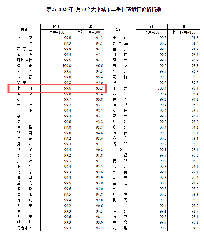 2月13日,国家统计局公布2026年1月份70个大中城市商品住宅销售价格变动情况。数据显示,1月份,70个大中城市商品住宅销售价格环比降幅总体收窄、同比下降。