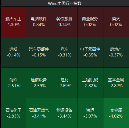 2月13日,虽然全天三大股指集体下跌,但市场中不乏表现亮眼的板块。例如当天的航天军工板块,就整体逆势上涨1.30%,在各行业板块中涨幅居前。