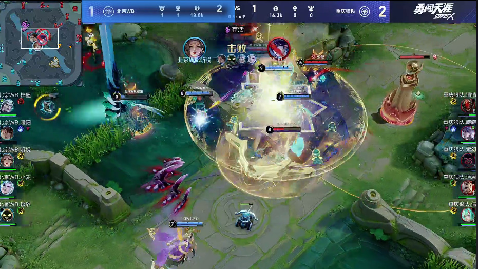 双方中路团战大乱斗,皖皖镜千里逃亡终被小麦敖隐收下