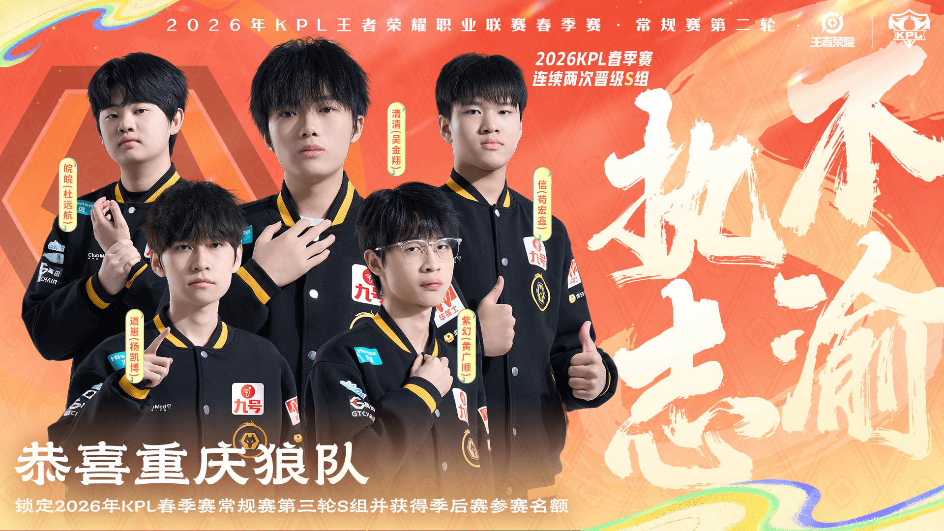 恭喜重庆狼队锁定2026KPL春季赛常规赛第三轮S组,并获得季后赛参赛名额!