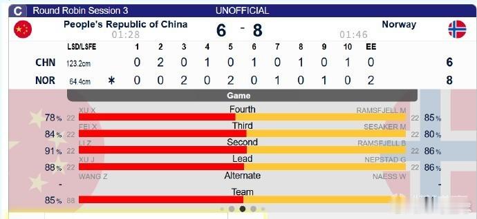 ❌2月13日 16:05 🇨🇳 中国 6-8 挪威🇳🇴
