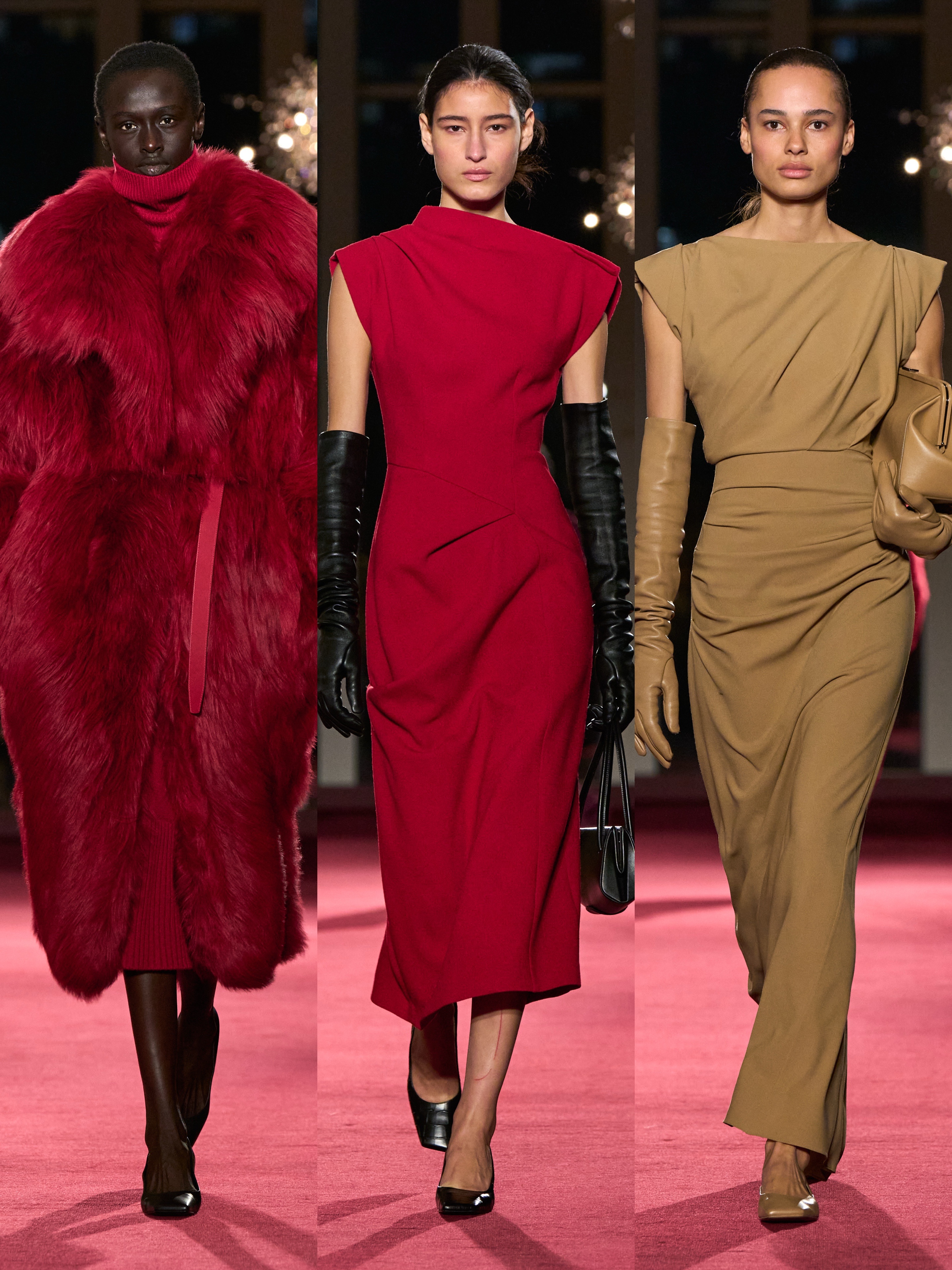 MICHAEL KORS COLLECTION 2026秋冬大秀登陆纽约林肯中心大都会歌剧院,以大都会风尚致敬品牌45周年。本季以戏剧化简约重塑经典,斜裁垂坠、利落廓形与华丽刺绣碰撞,浅鹿色搭配浓郁红调,高级感拉满,好好看!❤️❤️🔥