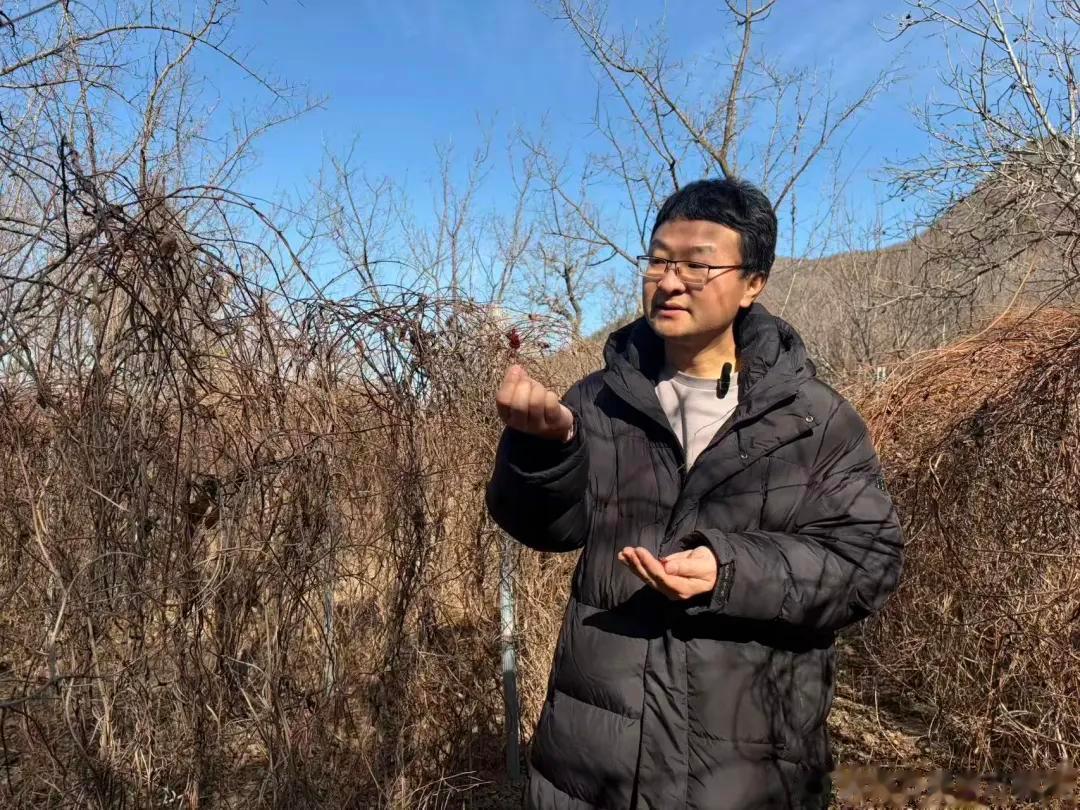 图为史然在查看田间未采摘完的五味子。