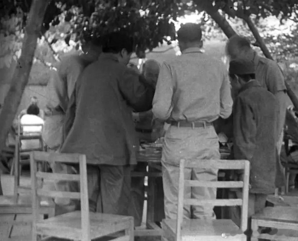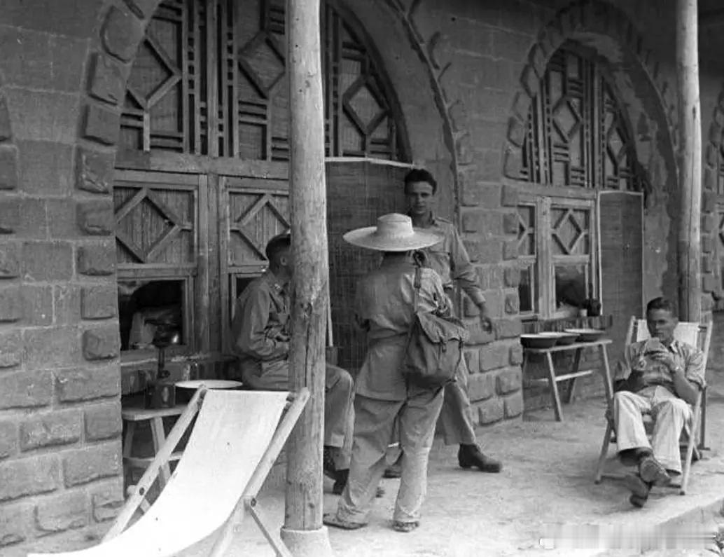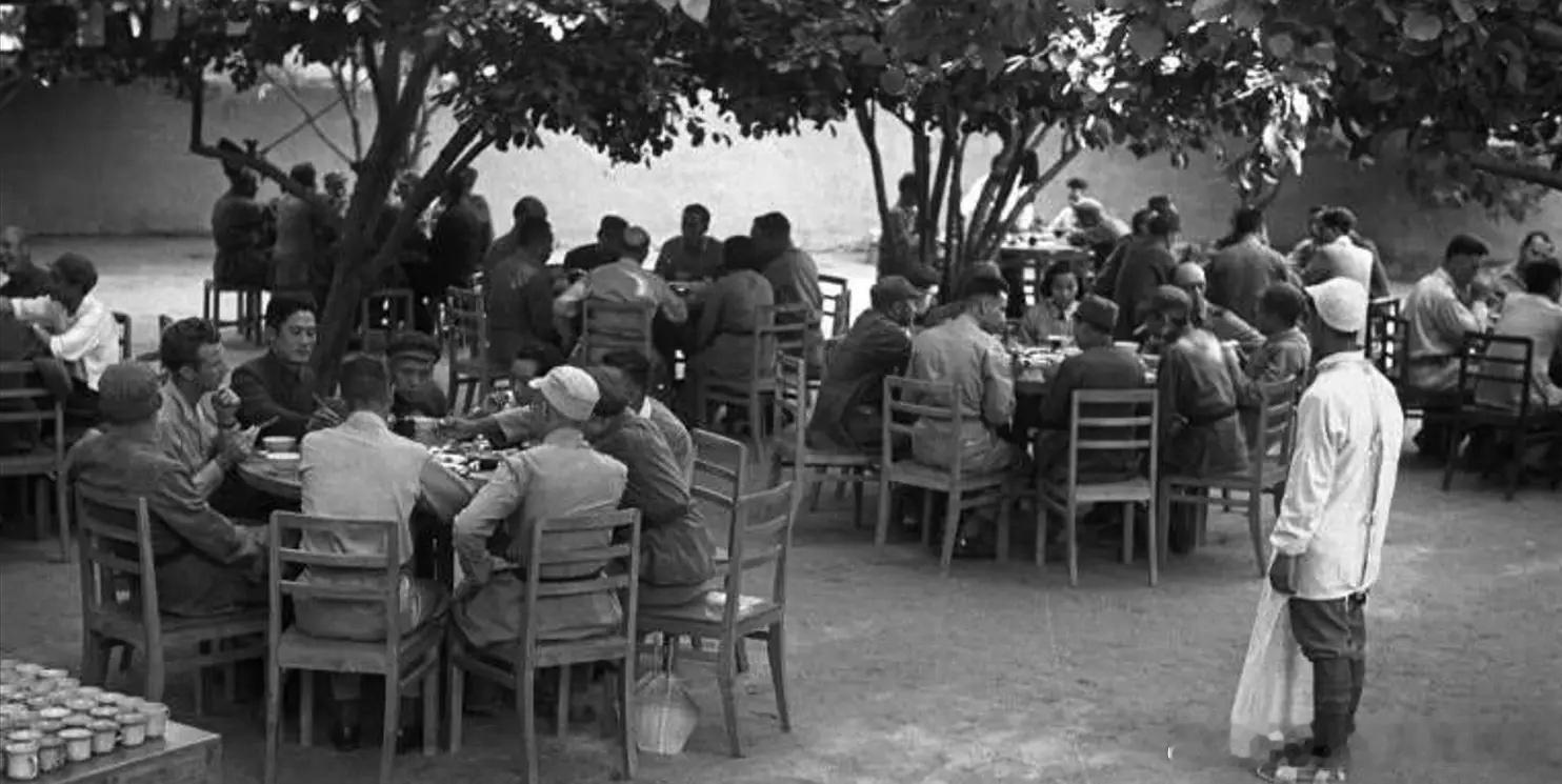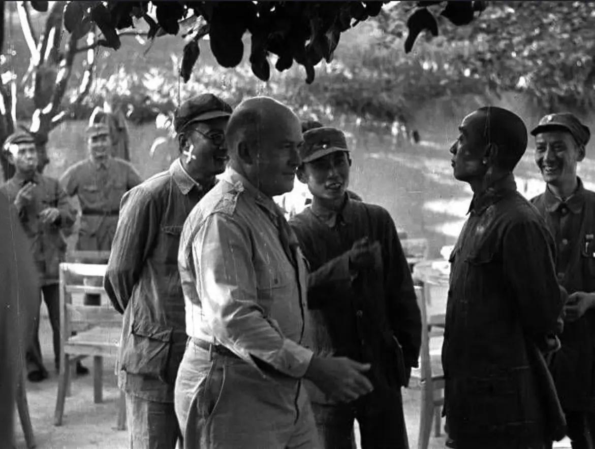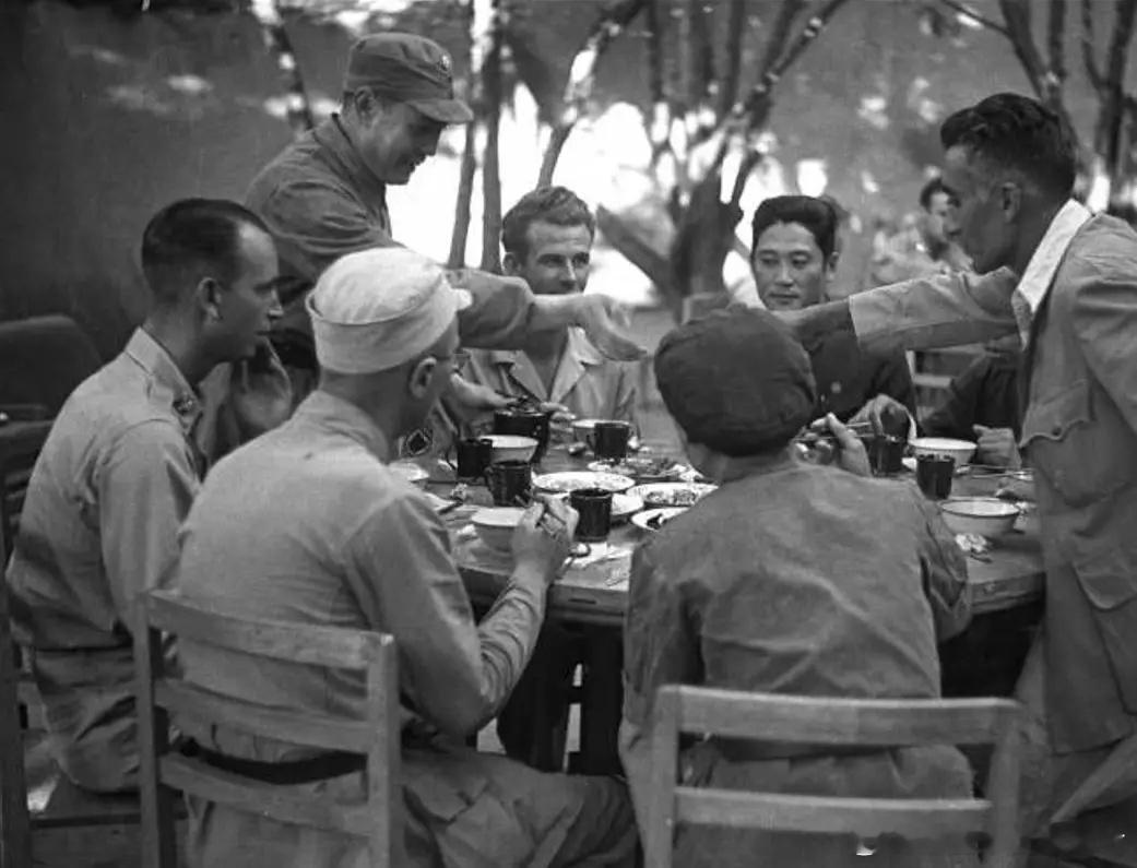 1944年美军观察团访问延安,毛主席、彭德怀等重要领导陪他们喝酒