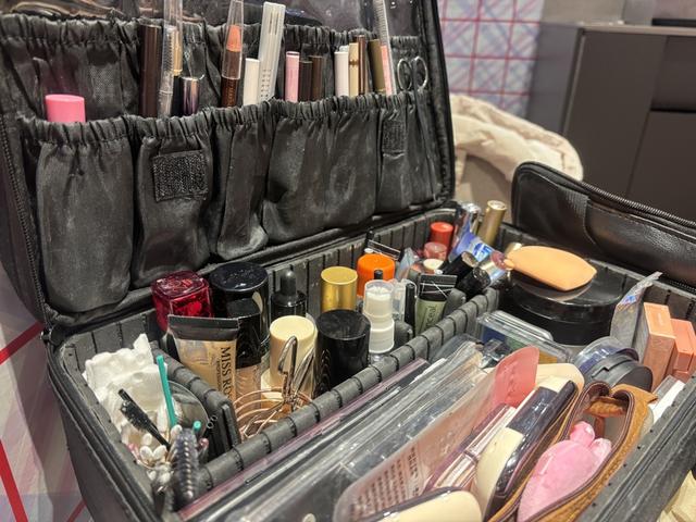 春节前,一个工作日上午,记者在闵行一家商场见到了带着“百宝箱”的妆娘“羽毛”。她的化妆箱分区收纳:上层的网兜和束口袋插满各类化妆刷、眉笔、眼线笔;下层,诸如粉底液一类的瓶瓶罐罐与眼影盘、高光盘等分门别类摆放整齐。
