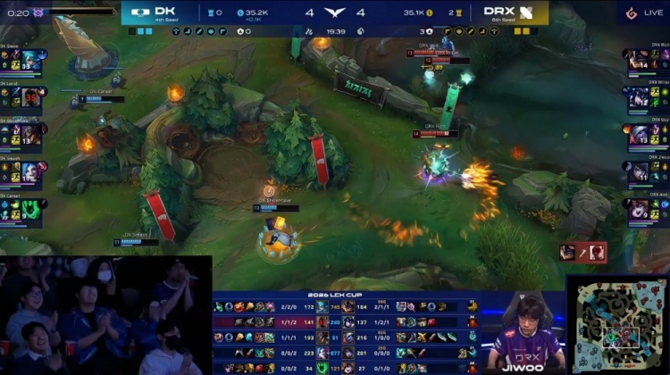 第二局:Siu!Siwoo无敌大纳尔拍晕DRXJiwoo三杀难翻盘DK扳回一城