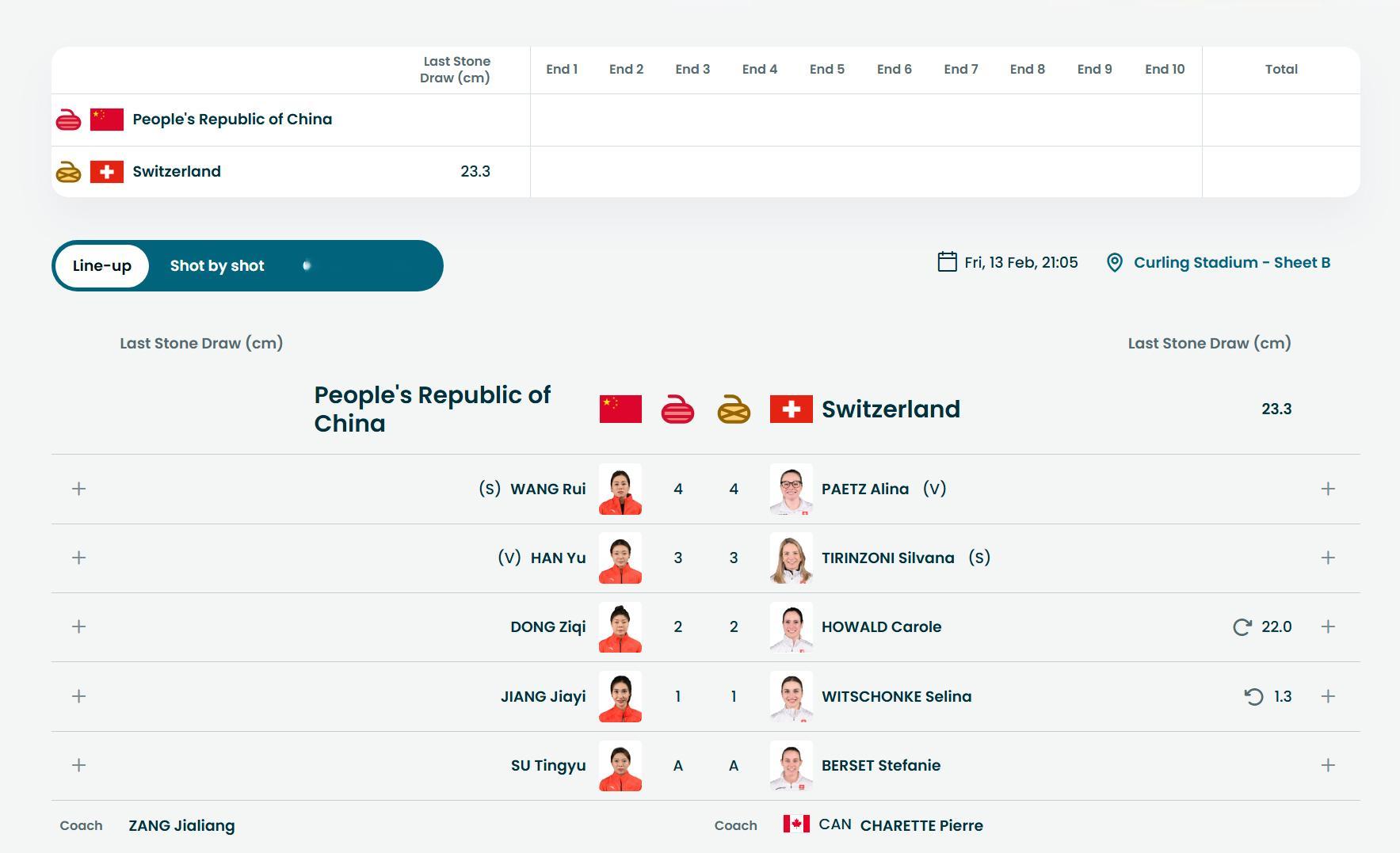 【奥运冰壶】中国-瑞士,瑞士率先投了LSD,23.3cm