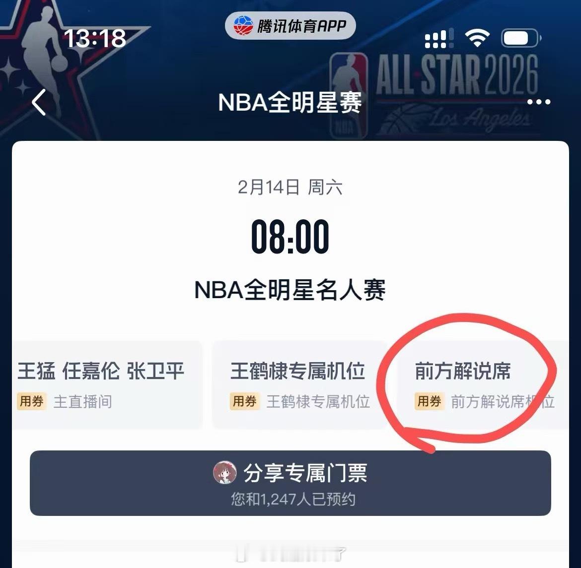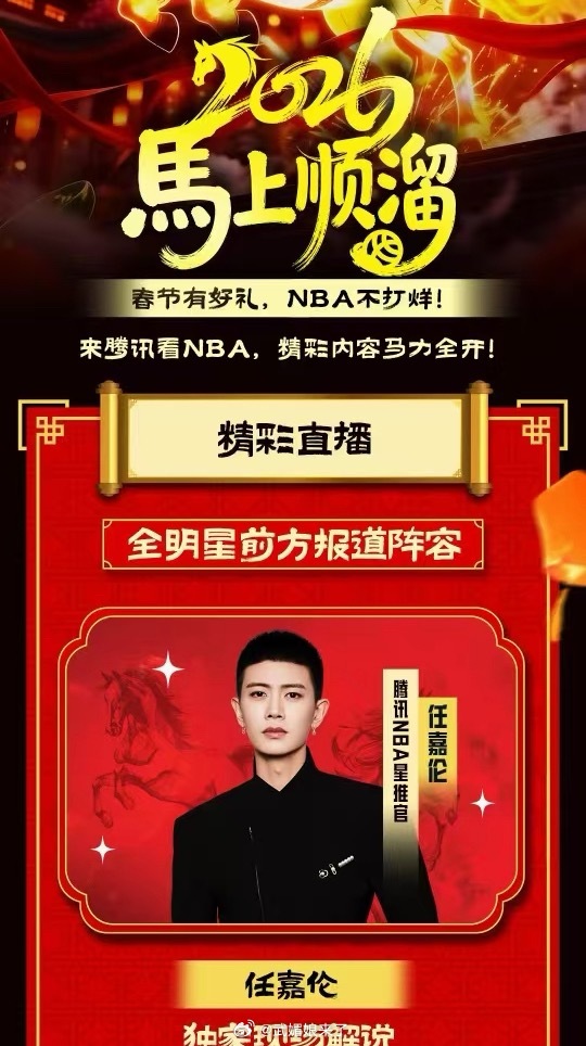 任嘉伦明天NBA全明星名人赛解说早上7点半就可以开始蹲啦解说席也有专属机位哦✌️