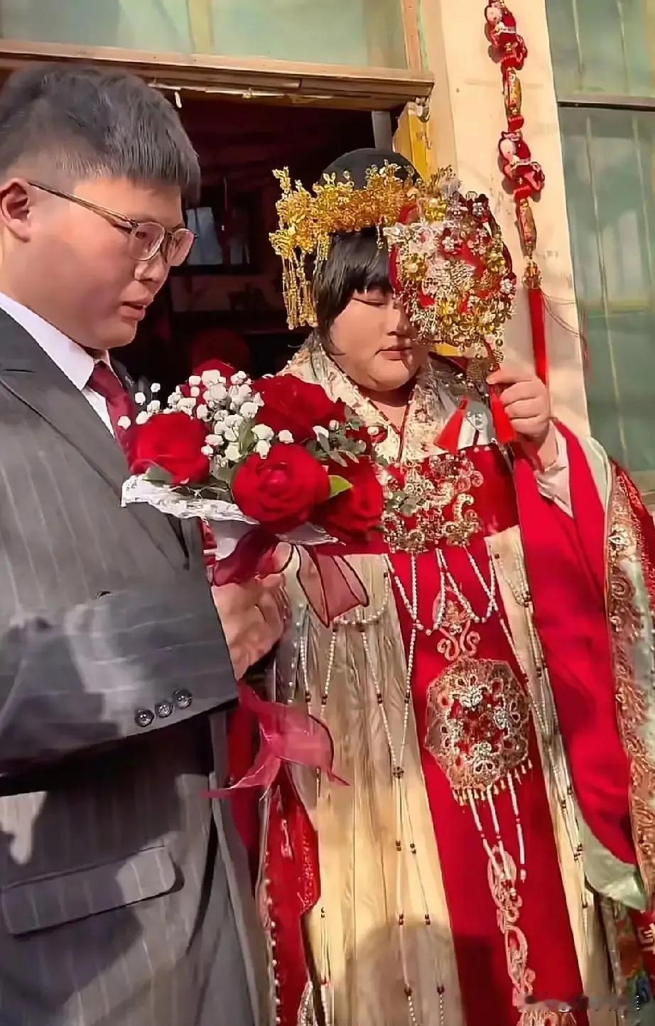 朱雪梅跟她的新婚丈夫很般配,她虽然长得胖嘟嘟的,但是五官精致,如果瘦下来,肯定也是一个大美女。 这么胖都还那么好看。