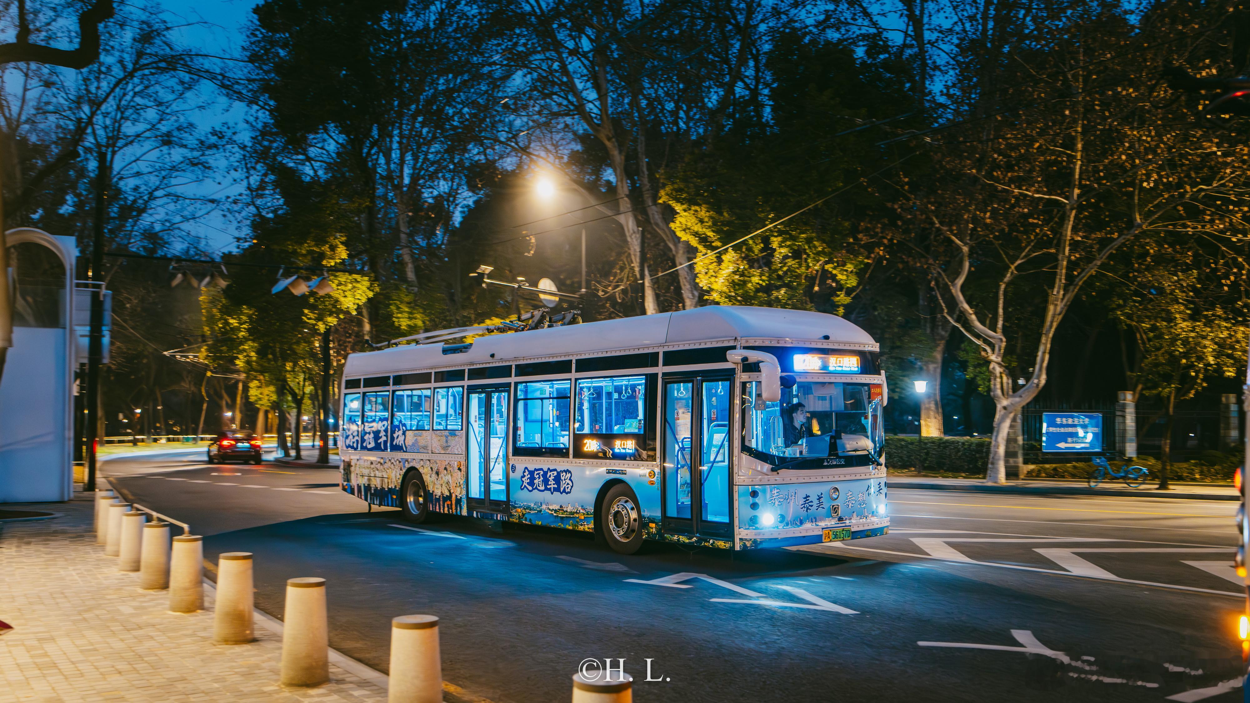 无轨电车节前最后一波新广告之泰州文旅。20路S5A2003号卸下爱乐乐团新年音乐会广告,今天换上泰州文旅广告。泰州今年最吸引眼球的一件事儿就是在“苏超”赛场上一黑到底,逆袭夺冠的故事。因此,本广告两侧的内容并不一样——窗册的宣传语是“泰州喊侬来白相”;而门侧则不出意外地放上了泰州足球夺冠照片,并配以“游冠军城,走冠军路”的霸气标语。是时候去泰州看看了,因为泰州“泰”美,“泰”想你来。