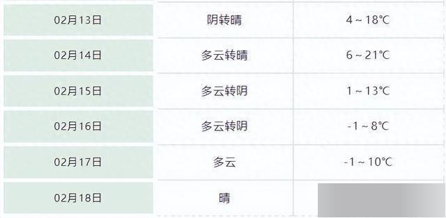 14日晴转多云,气温6~21℃