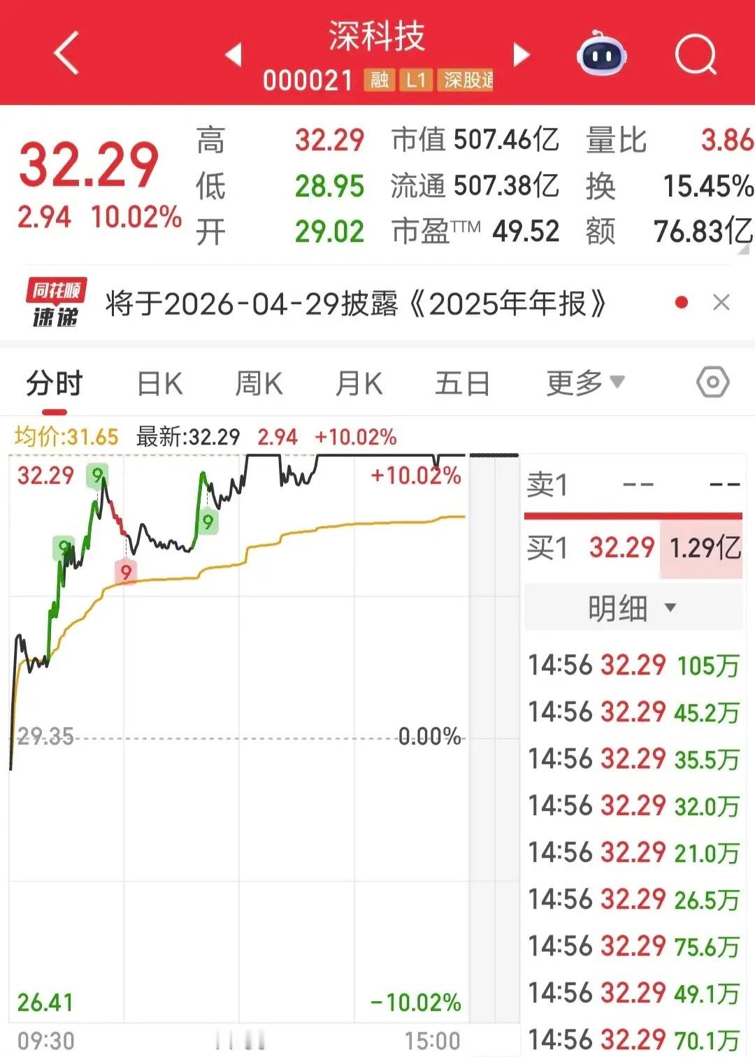 今天深科技盘中涨停。